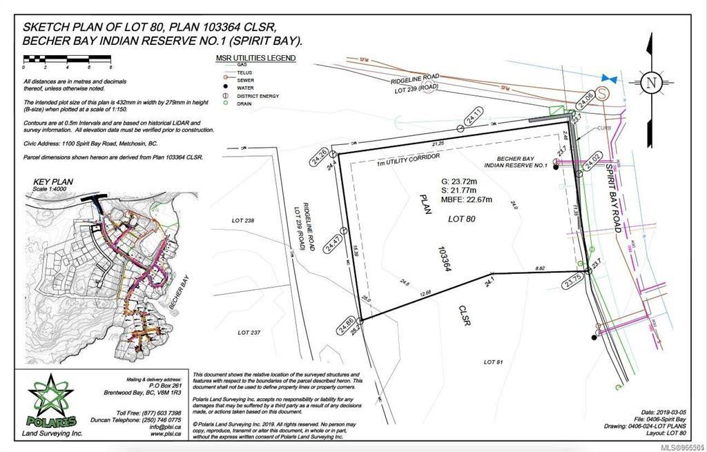 Spirit Bay, come for the peace and serenity of seaside living. Lovely community on the edge of the ocean, only 20 minutes from Langford. Approximately 3200 sq. ft corner lot, with services to the lot line. Use one of the many house designs available or bring your own plans. This is a leasehold land with a pre-paid, 99-year lease. Local marina just a stones throw away down the road. Spirit Bay has plenty to offer; boating, fishing and hiking to name a few! The future plans include a range of recreation facilities including tennis courts, swimming pool, multisport playing field, community gardens and more. Only 40 minutes to Victoria makes this beautiful community very accessible.