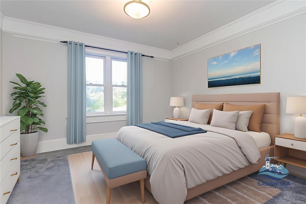 Step into the charm of a beautifully restored 1912 Edwardian farmhouse offering 2,247 sq ft plus a 1,220 sq ft under-height lower-level suite, on a sunny .24-ac lot in Chase River. Zoned R5 with carriage house potential, this home blends heritage character w/many thoughtful modern updates. Features include original fir floors, vintage doors, stained glass, crown molding, shiplap, a bright farmhouse-style kitchen w/island, and custom cabinetry. The main floor includes a vaulted entry, primary bed with ensuite, powder room/laundry combo, and access to the classic covered porch. Upstairs are five bedrooms, a full bath, and upper deck with dressing rm. The lower level has an updated self-contained 2-bed suite with private entrance, kitchen with eating bar, laundry. Enjoy a great yard w/mature landscaping, garden shed, chicken coop & potential 2nd driveway. Walk to the elementary school, Boys & Girls Club, and shopping. Close all Nanaimo amenities, airport, ferry, & transit. Meas. approx.