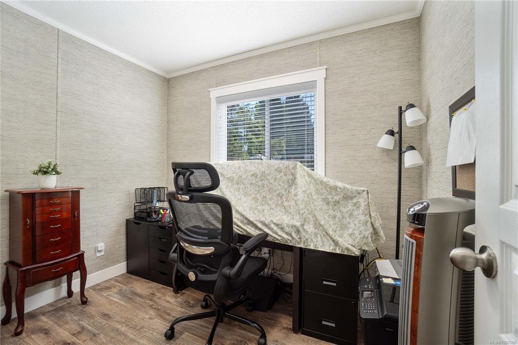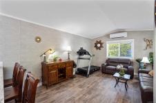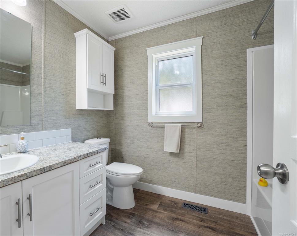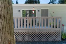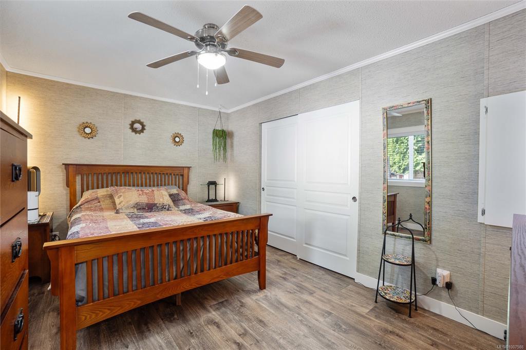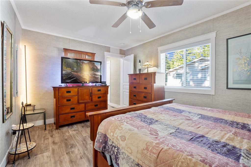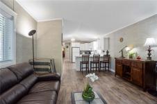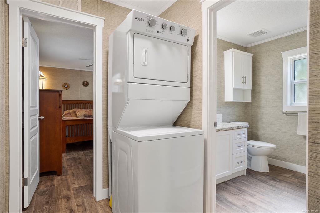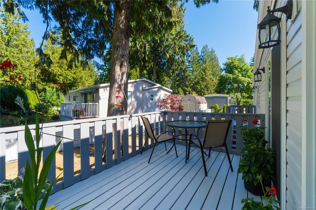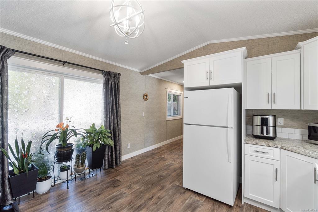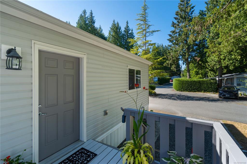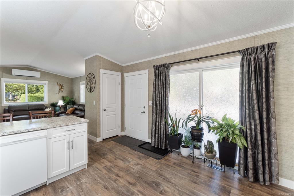 Nestled in the quiet and serene Seabreeze MHP sits this meticulously maintained 2019 built home. Upon entering the home you will immediately notice the open, airy feeling and ample amounts of daylight provided by the vaulted ceilings and numerous windows throughout the main living space. The kitchen is complete with modern finishings and bar seating, perfect for entertaining or casual dining. The primary bedroom features a huge closet for all your wardrobe needs, and the same beautiful textured wallpaper and modern flooring which run throughout the rest of the home. A second bedroom, bathroom, and laundry complete the space. Outside you will find a large deck, sizeable storage shed, beautifully tended to garden beds, and plenty of room for you to enjoy your quiet outdoor oasis. Although set amongst nature, you are only minutes from shopping, restaurants, ferries and the airport. Featuring a heat pump, gutter guards, and two off-street parking spots, this home truly has it all!