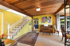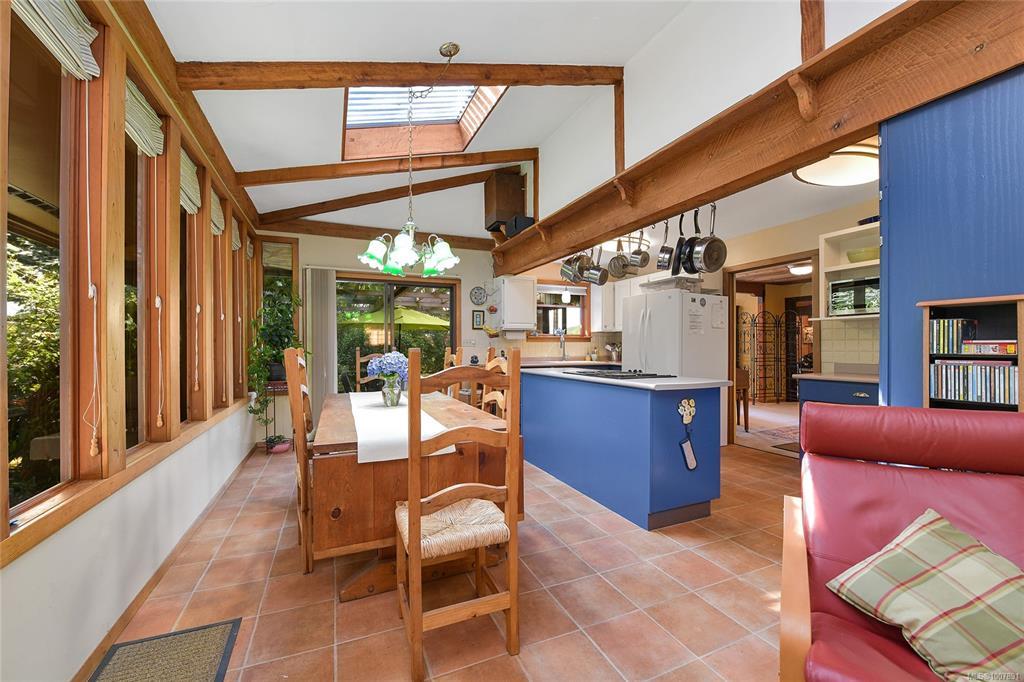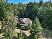 SAANICH PENINSULA COUNTRY RETREAT! Discover your very own sanctuary in the Mount Newton Valley on the beautiful Saanich Peninsula with this European styled home. The charm of exposed beams, vaulted ceilings, a stone fireplace, and leaded French doors create an inviting retreat that is awaiting your update ideas. This custom-built home features 4 bedrooms, 4 bathrooms, a primary bedroom on the main level, a separate dining area, a country style eat-in kitchen, a cozy family room with a wood stove, and a private patio overlooking your own magical forest. The property also includes a separate studio and retreat building which offers an array of flexible living options and space for the entire family. Lovingly landscaped gardens, fig/fruit trees, grapevines, vegetable gardens and open grassy areas surround the home, while the nearly 5-acre nature retreat offers creatively developed trails and the peaceful sounds of Graham Creek. This is a legacy property waiting for you and your family!