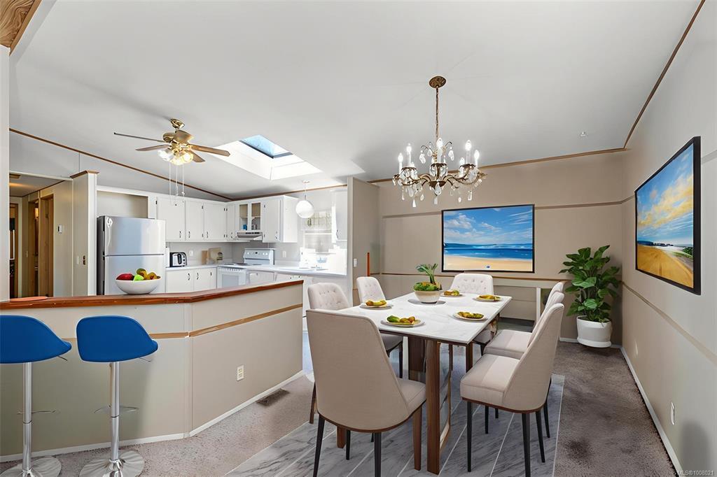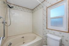 Charming Double-Wide Home in 55+ Community – No Pets, No Rentals. Welcome to this spacious and inviting double-wide manufactured home located in a well-maintained 55+ mobile home park. This wonderful home features vaulted ceilings that create a bright and airy open-concept living space, combining the living room, dining area, and kitchen, perfect for comfortable everyday living. The generous primary bedroom offers a peaceful retreat with its own 4-piece ensuite. An additional bedroom and a second 4-piece main bathroom provide plenty of space for guests or hobbies. In-home laundry adds extra convenience. A great opportunity to enjoy a relaxed, low-maintenance lifestyle – truly a wonderful place to call home.