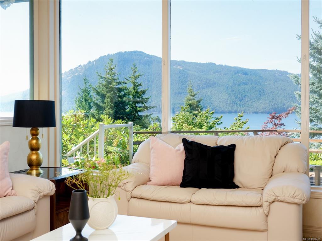 Perched on a beautifully landscaped and partially natural one-acre lot, this custom Care Award-winning home in its day offers sweeping panoramic views of the Gulf Islands and beyond. Lovingly maintained by its original owners, the home is designed for effortless entertaining with spacious, light-filled interiors and seamless indoor-outdoor flow. Expansive windows frame ever-changing coastal vistas, while generous living areas open to multiple decks and patios. The large primary suite is a private retreat with a massive walk-in closet and an impressive ensuite. Outdoors, enjoy a greenhouse for gardening, a separate two-car garage, and a workshop with overheight ceilings—ideal for hobbyists or serious projects. A rare blend of architectural quality, privacy, and West Coast lifestyle.