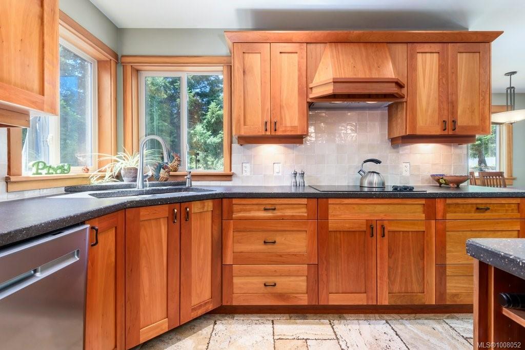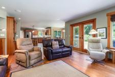 Island living at it's finest! Step away from the hustle and bustle, and into your own gated private multi-generational retreat. The main home is a West Coast beauty, 4400+ sq ft, 5 bedrooms/4baths with tiger wood floors, clear hemlock trim, and fir doors to give it a rustic feel, Upstairs, you'll find 4 large bedrooms, including the primary with a huge ensuite that feels like a spa. Walkout basement area opens to the patio/mineral spa and has a large rec room, and another bedroom and bath. The quality continues to the carriage house with vaulted ceilings, river rock gas fireplace and a private deck. Between the two homes you'll find the sauna house, featuring an outdoor shower, sitting area and a cold plunge tub. Feed the whole family from the established garden with a 30x40 greenhouse and chicken coop. Almost 5 acres, fully fenced and gated. To top it off, there's a cleared fully serviced building site with it's own driveway and gate for your future plans!