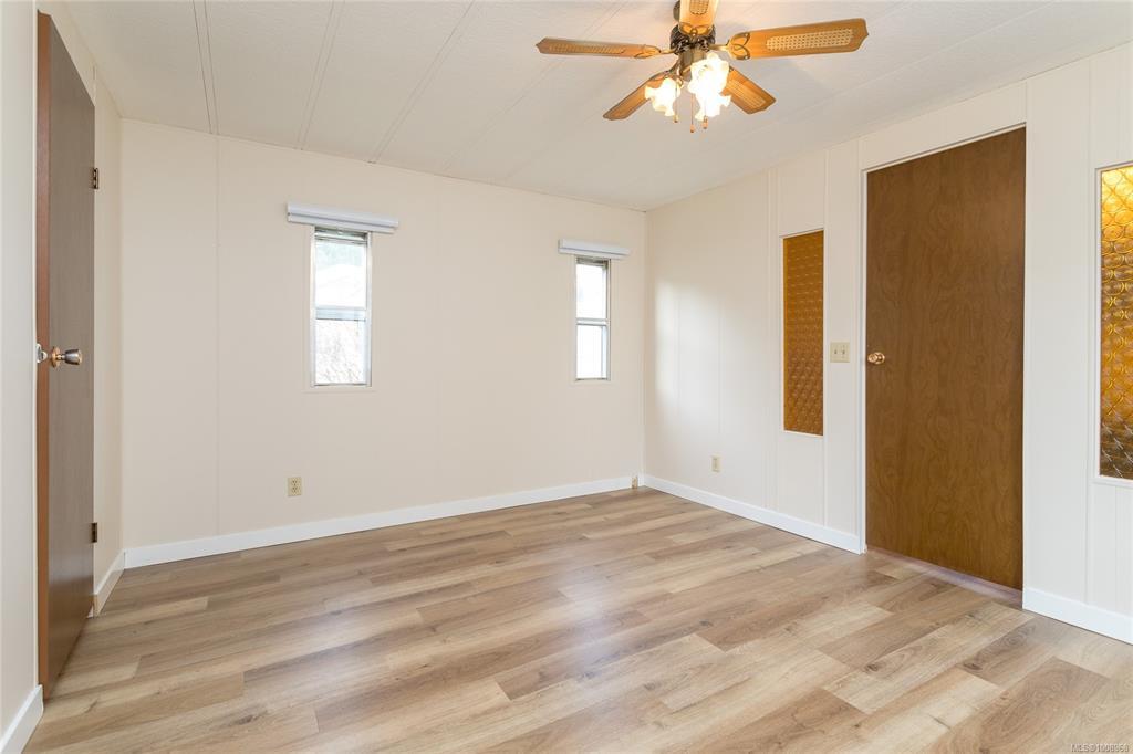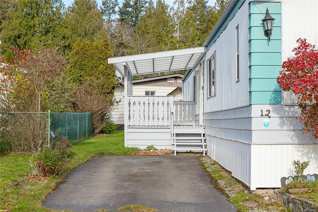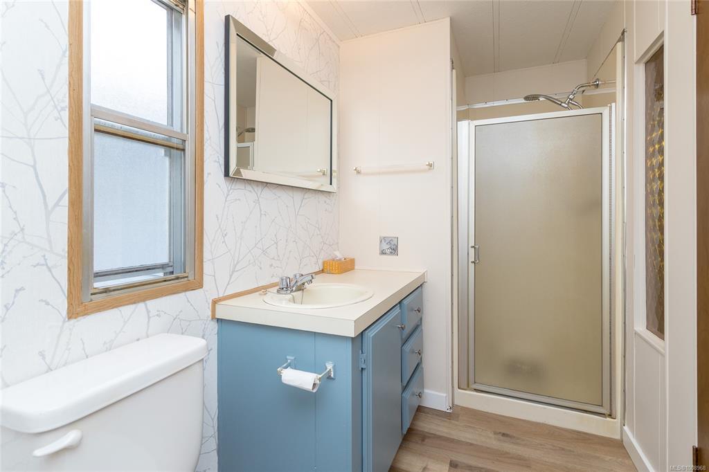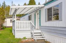 Move-in ready & freshly updated! This well-maintained 2-bedroom, 2-bathroom manufactured home is located in the popular, established Cedar Glen Mobile Home Park on the Victoria side of Sooke. Recent upgrades include fresh paint, new flooring, a new heat pump, & brand-new appliances. With over 900 sq/ft of comfortable living space, it offers an ideal layout with one bedroom & one bathroom at each end of the home; perfect for privacy! Large eat-in kitchen. Bright & roomy living area. The 4-piece main bathroom is conveniently located right off the living room & beside the nicely sized second bedroom. Spacious primary bedroom with walk-in closet and 3-piece ensuite (potential to add a bathtub)! Laundry & secondary access are just beyond the primary. Outside, there's a usable yard, a separate storage shed for your convenience, & a spacious covered sundeck—perfect for relaxing year-round. All this, with a monthly pad fee of $570 - don’t miss it! Immediate possession available!