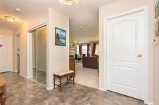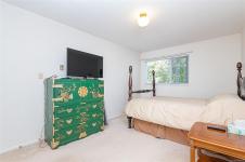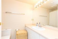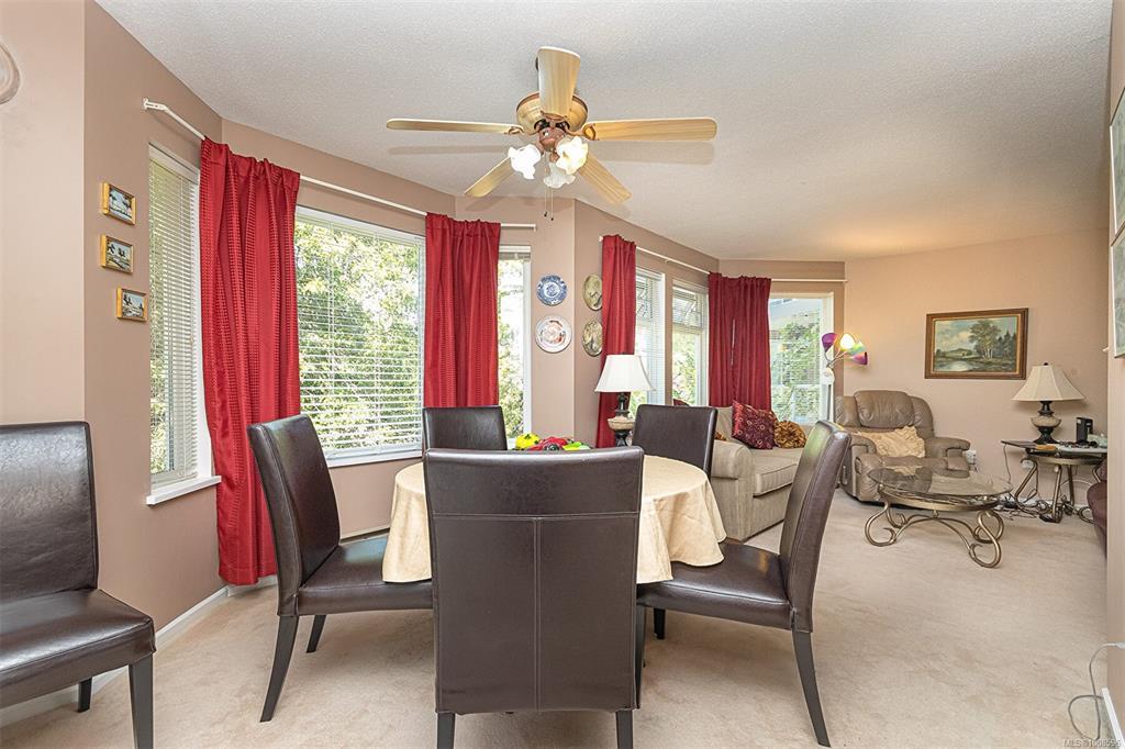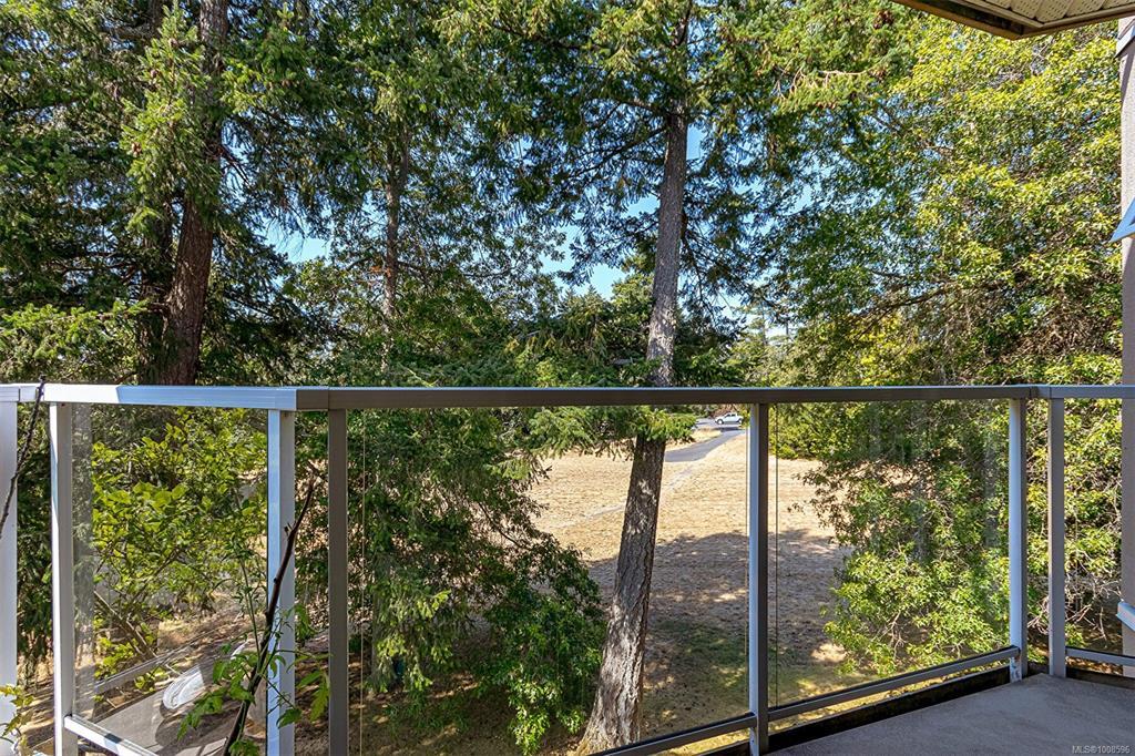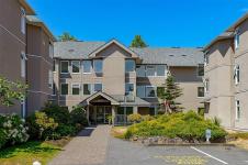 Welcome to Royal Oak Estates! This bright and spacious 2-bedroom, 2-bathroom corner condo offers 1,155 sq ft of comfortable living with a smart layout that places bedrooms on opposite ends for added privacy. The large living room with fireplace is next to the dining room that has direct access to the deck overlooking a treed greenspace. There's a generous kitchen that features a charming eat-in nook overlooking the deck. The primary bedroom includes a 4-piece en-suite and access to a private balcony with peaceful views of surrounding greenery. Additional highlights include in-suite laundry with storage, a separate storage locker, and an assigned parking stall. This well-managed building is ideally located just steps to the Commonwealth Pool, top-rated schools, Elk/Beaver Lake Regional Park for hiking & swimming.The neighbourhood is hard to beat with transit at your door step & Broadmead/Royal Oak Shopping Villages with all the shopping as well as amazing restaurants & coffee shops.