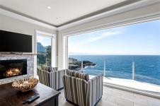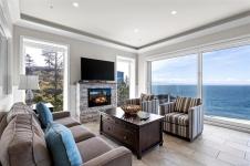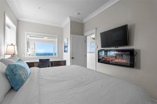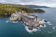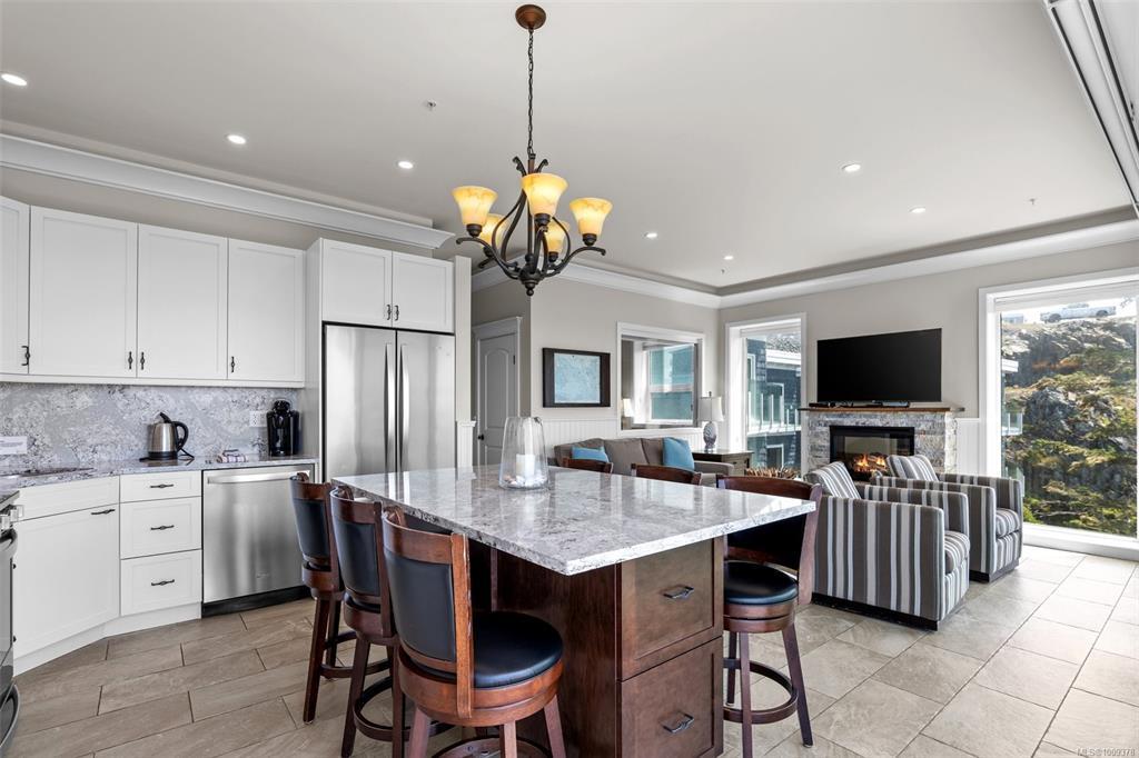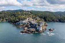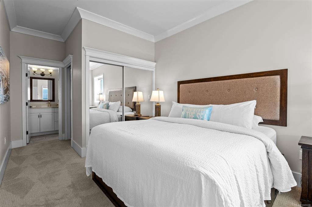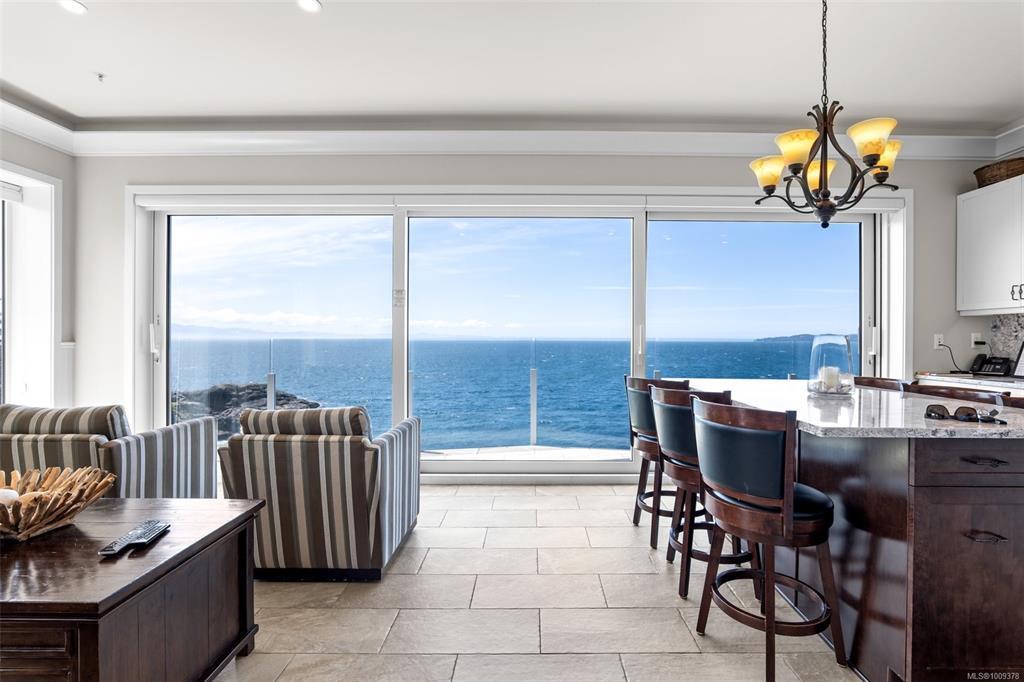 Immerse yourself in coastal luxury at this stunning south-west facing SookePoint Cottage, perched above a vibrant, active marine panorama. Revel in the elegant open-concept living and kitchen area, framed by an expansive tri-panel sliding glass wall that invites uninterrupted views toward the Olympic Mountains, the vast Pacific, and the picturesque Sooke Hills. This exquisitely furnished and fully equipped two-bedroom, two-bathroom waterfront haven spans 1035 square feet, featuring Insulated Concrete Form (ICF) construction for superior efficiency and soundproofing. The sophisticated interior is adorned with top-tier cabinetry, sleek stainless appliances, and pristine quartz countertops. Each bedroom is a sanctuary, complete with a snug electric fireplace. While the master suite boasts a lovely ensuite with separate shower, the main bath features shower and freestanding soaking tub. SookePoint offers an exclusive "lock&go" lifestyle with the flexibility of a rental option when away.