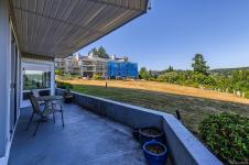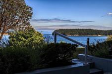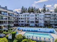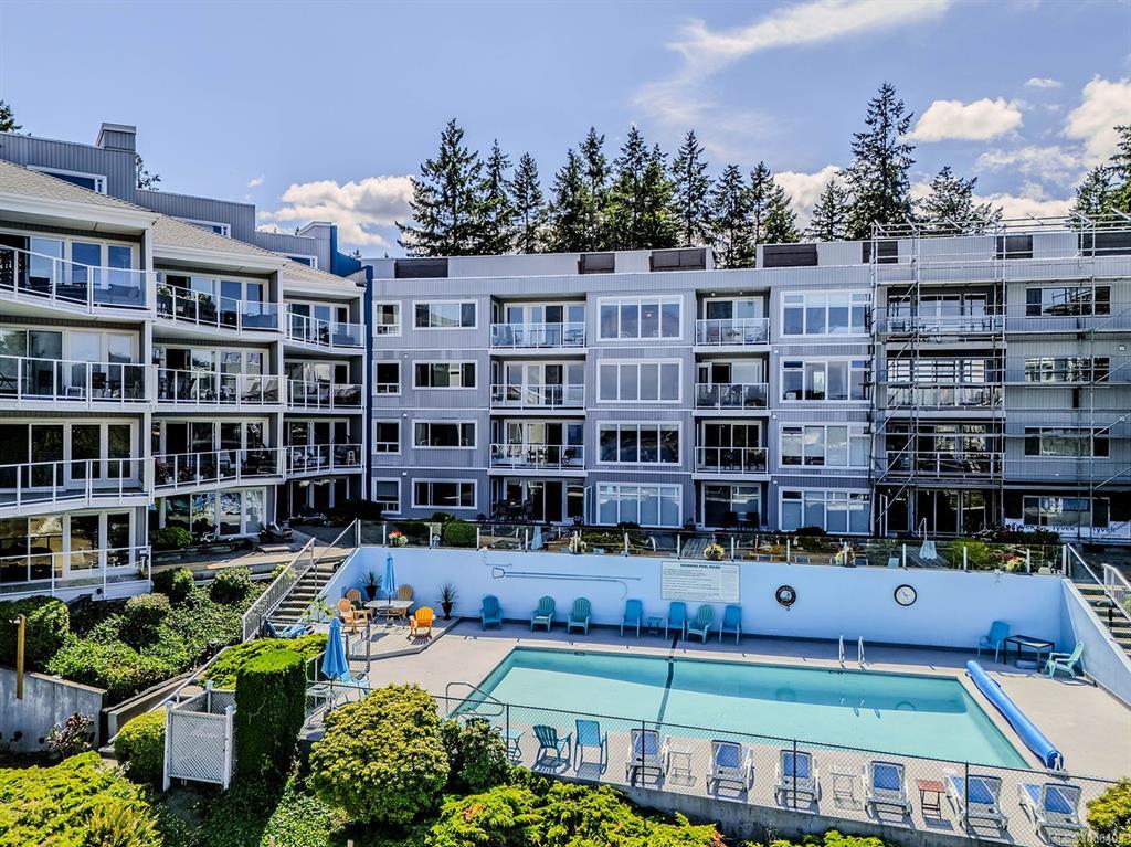 Enjoy stunning ocean views from this 1325 sq ft, 2 bed, 2 bath ground-floor condo in Seascape Manor, set on 4 acres of high-bank waterfront overlooking Departure Bay. Picture windows throughout fill the home with light, while a nearly 40’ patio offers the perfect spot for morning coffee or patio gardening. Inside, you’ll find an updated kitchen, cork floors, and an electric fireplace for cozy evenings. The primary bedroom features a 3 piece bath with level-entry walk-in shower, with the second bath has a 4 pice tub/ shower. Modern Roman-style blinds filter out the early morning sunshine. The building has undergone extensive renovations, including a refreshed pool deck, hot tub, and sauna. A convenient parking stall is included. This home blends space, comfort, and resort-style amenities in a spectacular waterfront setting.