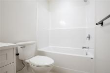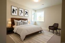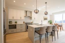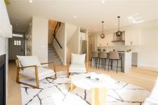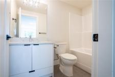 OPEN HOUSE SAT 11am-1pm. Experience the best of Southpoint in this stunning brand-new half duplex, perfectly situated on a serene greenspace in desirable South Bear Mountain. This spacious 2500+ sq ft retreat features a convenient in-law suite, ideal for multi-generational living or rental income. The main floor offers an open-concept layout with a sleek kitchen boasting a gas stove, island, and breakfast bar, plus a cozy living room with gas fireplace and marble surround. Enjoy indoor-outdoor living on the expansive deck with gas BBQ outlet and breathtaking views. Additional highlights include a double garage, ample driveway parking, and fenced rear yard with synthetic lawn. Benefit from efficient heating/cooling, Built Green Gold certification, engineered oak flooring, and a tankless hot water system. Conveniently located near amenities, TC1, transit, and Bear Mountain recreation, this fantastic home includes a New Home Warranty.