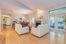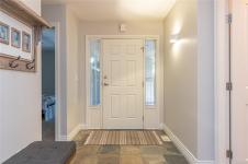 Welcome to Saint Andrews Lane in French Creek, a charming seaside community just moments from Parksville and it's amenities. This 2005-built half duplex offers rare privacy with lush back & side yards. Spanning 2,432 sqft, it features vaulted ceilings, gas fireplace & open kitchen with eating bar. The flowing layout is perfect for entertaining, with a dedicated dining area including a cozy den at the rear. The spacious primary suite opens to the outdoors and boasts a bright ensuite with double vanities & two walk-in closets. A main-floor second bedroom sits beside a full bath, and the well-appointed laundry room offers ample cabinetry & a sink. Upstairs, a converted loft creates the 3rd bedroom with half bath-ideal for guests or remote work. Double garage, extra driveway parking & no-maintenance landscaping. Adult-oriented neighbourhood with no age restrictions here. Situated on the east coast of Vancouver Island, known for spectacular beaches & tranquil lifestyle. Come see it!