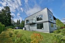 Fully furnished, ultra modern ocean view home in walking distance to everything downtown Port Hardy. 3 years remaining on home warranty for this 2 bedroom plus den, 3 bathroom, 3 car garage Aspire Custom Design home. The lot below is included in this sale, to ensure your view remains unobstructed. Welcome your guests into the large entrance on ground level with beautiful epoxy painted concrete. The ground level also offers a pantry, entrance to the garage and maintenance room, home gym (equipment included), bathroom and bedroom area with murphy bed and access to the yard. Come on upstairs to the very open area concept. Living, kitchen and dining all have a great view. Wake up to the amazing sunrises right from the comfort of your bed. The main bedroom has a large walk in closet and beautiful ensuite . The second bedroom on this level are at the opposite end of the house with it's own ensuite as well.