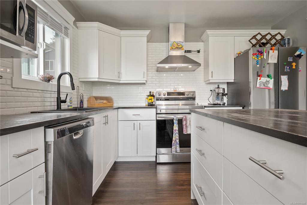 Come discover this family & investor-friendly North Nanaimo property. Nestled in a cul-de-sac, this home presents a rare opportunity to buy in one of the most highly regarded neighbourhoods and school zones at an exceptional price. Nearby you have your pick of recreation with Pipers Lagoon, Neck point, Linley Valley and Lost lake all within 5 minutes. This home provides 3 bedrooms and 2 bathrooms over 3 floors with an additional flex space to use as a rec room or family space. The open living space and full windows allow natural light to fill the room and give you an ocean view and the coastal mountains. Updates include a full renovation in 2021, new roof in 2023, Windows in 2021, flooring in 2021, Hot water tank in 2022 and new appliances in 2022. The convenience of a garage provides additional storage or parking options. New deck and exterior paint means this home is ready to move into and enjoy knowing there is nothing more to do. Measurements are approx, verify if important.