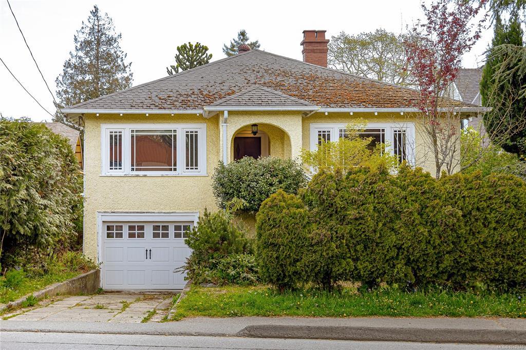Steeped in character and full of potential, this 1934 home offers nearly 1,900 sqft of living space over two levels on a 6,000+ sq ft lot in one of Victoria’s most desirable neighbourhoods. With top schools, UVic, Camosun, Hillside Mall, and the Oak Bay border nearby, the location is ideal for families, students, or investors alike. Original hardwood floors, a wood-burning fireplace & classic built-ins with leaded glass doors set the tone in the cozy living room.The retro kitchen includes updated stainless appliances and a sunny dining nook with views of the backyard’s iconic monkey tree. A refreshed bathroom, rear mudroom, and private, treed yard round out the main floor. Downstairs offers storage, laundry, garage access, and a one-bedroom in-law space with its own entrance, compact kitchen, and 3-piece bath—perfect for extended family or rec room. A rare opportunity to restore, invest, or settle into a charming home in a vibrant, walkable neighbourhood.