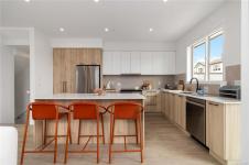 Masterfully designed 3-level Shoreline townhome, where modern luxury meets seaside charm mins from the Ocean. Distinguished residence features a culinary-inspired kitchen with modern appliances, soaring windows infusing open-concept spaces with natural light. Inviting living rm enhanced with an elegant fireplace. Lavish primary suite with spa-quality ensuite, & walk-in closet, plus 2 more bedrooms. Adaptable lower level transforms into your exclusive sanctuary—refined workspace, home gym, or immersive media rm. Plus innovative dual mini-split climate control for year-round comfort. Perfectly positioned where exceptional amenities, beautiful parks, and scenic trails await exploration. Visit the HomeStore at 394 Tradewinds Ave, open Sat - Thurs 12–4. Price is plus GST; measurements are approx. Photos are of a similar show home. Discover where sophisticated lifestyle, natural splendor, and thriving community create your perfect coastal sanctuary. Est Completion Early 2026.