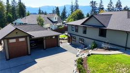 Stunning 2021 custom-built home in Woodland Shores at Lake Cowichan, Vancouver Island’s 2nd largest lake! Perched on a beautifully landscaped corner lot, this residence offers 360° lake & mountain views, exposed beams, engineered hardwood, Fisher & Paykel appliances, and over $100K in custom cabinetry. The main level features 2 beds/2 baths, including a spa-inspired primary suite with rain shower, abundant storage, and a large walk-in closet. Natural light streams through a custom light tunnel and sun dome. The lower level includes 1 bed/1 bath, roughed-in kitchenette for suite potential, and a large crawl space storage area. Outdoor living shines with meticulous landscaping, recessed irrigation lines, integrated landscape lighting, BBQ + fire pit hookups, and more. A double garage plus 3-bay workshop with bath, 12’ RV door, 10” slab ready for a car lift, and ample boat or RV storage make this property truly exceptional. Steps to marina, trails, parks & water sports, minutes from town!