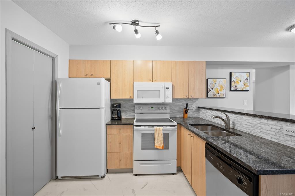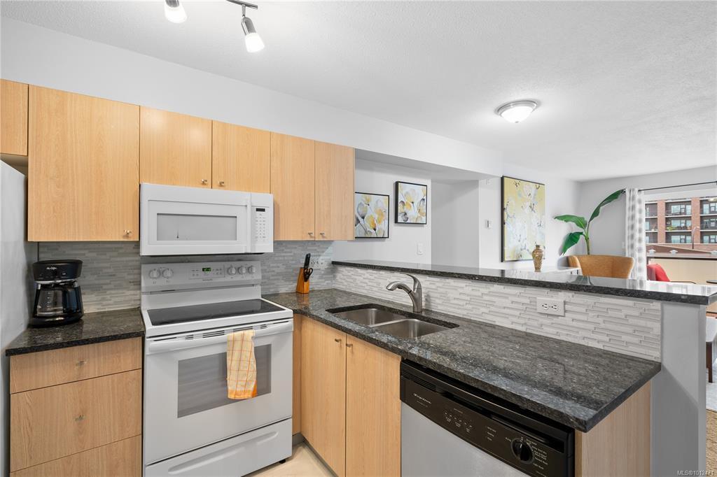 Vacant and furnished 2-bedroom South/West corner unit with all-day light exposure. Perfectly positioned in a well-maintained, pet-friendly building just steps from downtown amenities, shopping, and transit. The open layout offers over 750 sqft. of living space, including a large primary bedroom with a walk-in closet. Remodeled kitchen with granite countertops, complemented by a renovated bathroom featuring granite flooring and a marble-top vanity. Well cared for by attentive owners, with thoughtful updates throughout. Enjoy unrestricted rentals, in suite laundry and the ability to barbecue on your private balcony. Some tasteful furniture pieces can also be included, making this an excellent opportunity for first-time buyers, investors, or urban dwellers. Located in a secure, professionally managed building with low strata fees, this condo offers unbeatable value in one of Victoria’s most vibrant neighborhoods. Don’t miss your chance to make this bright, move-in-ready unit your own!