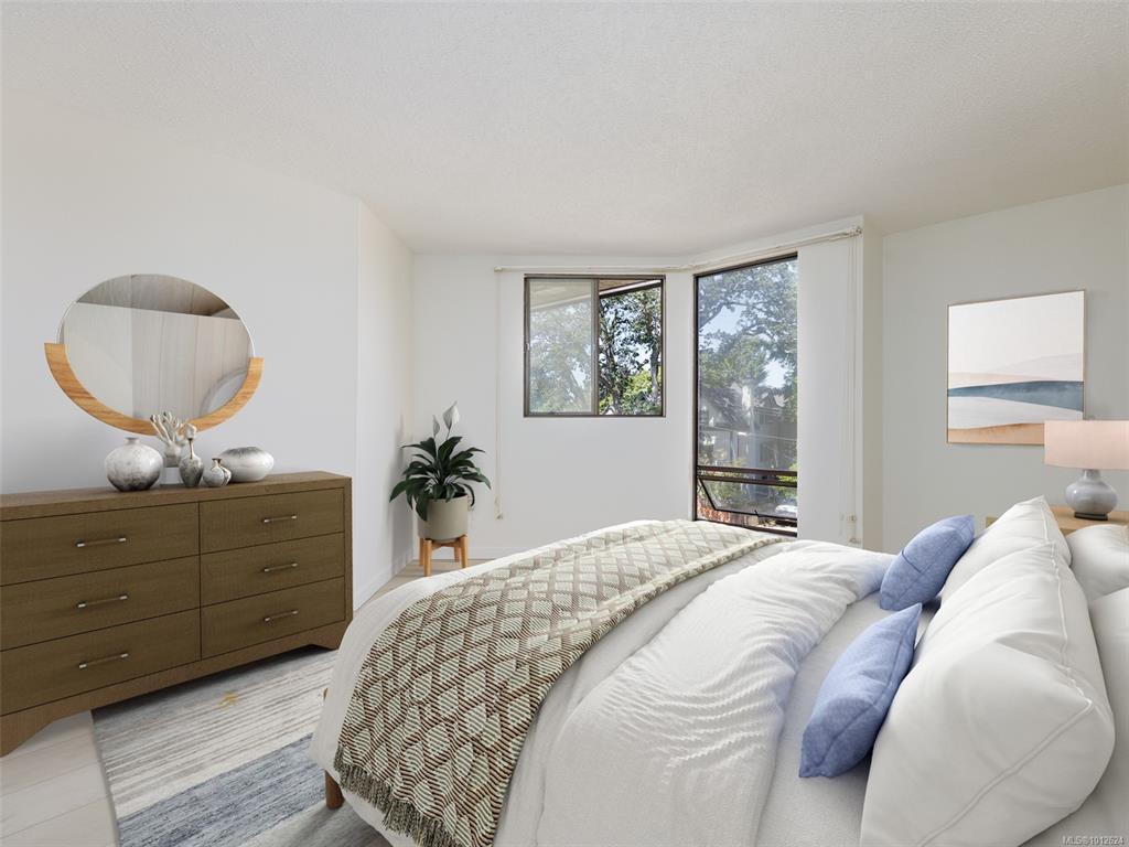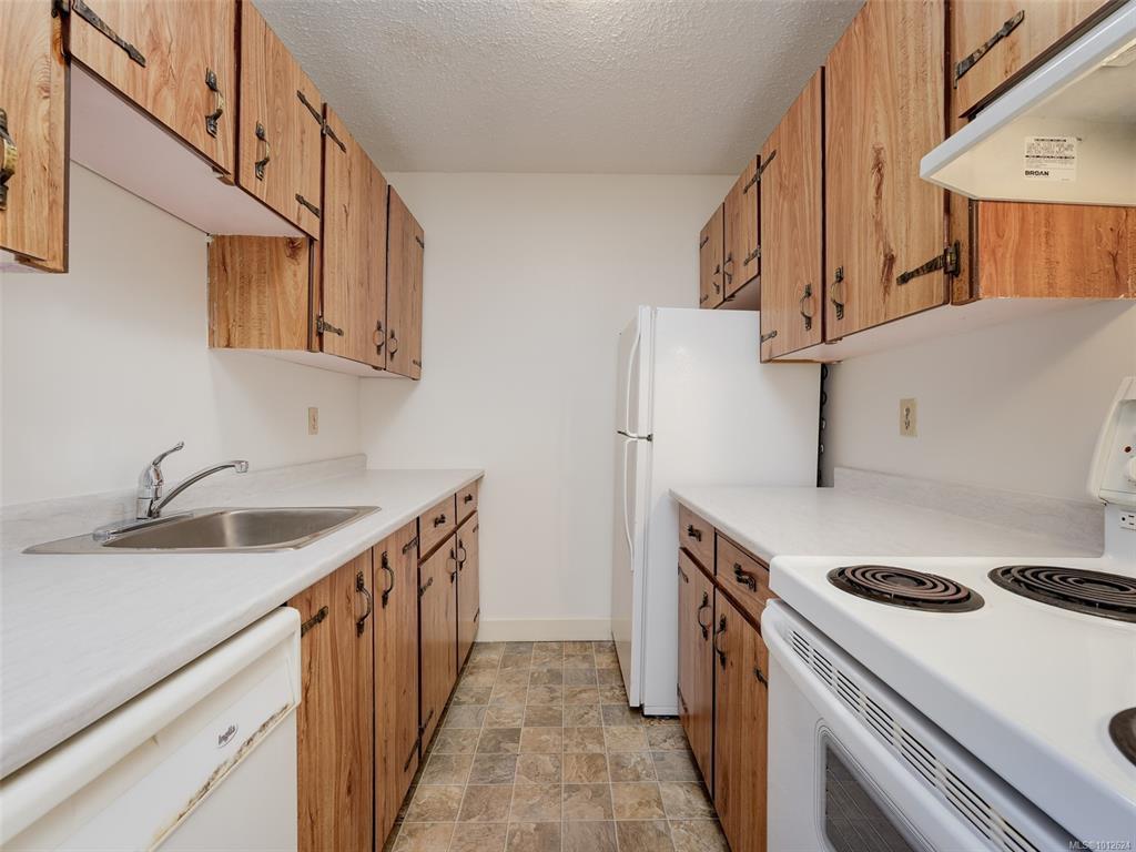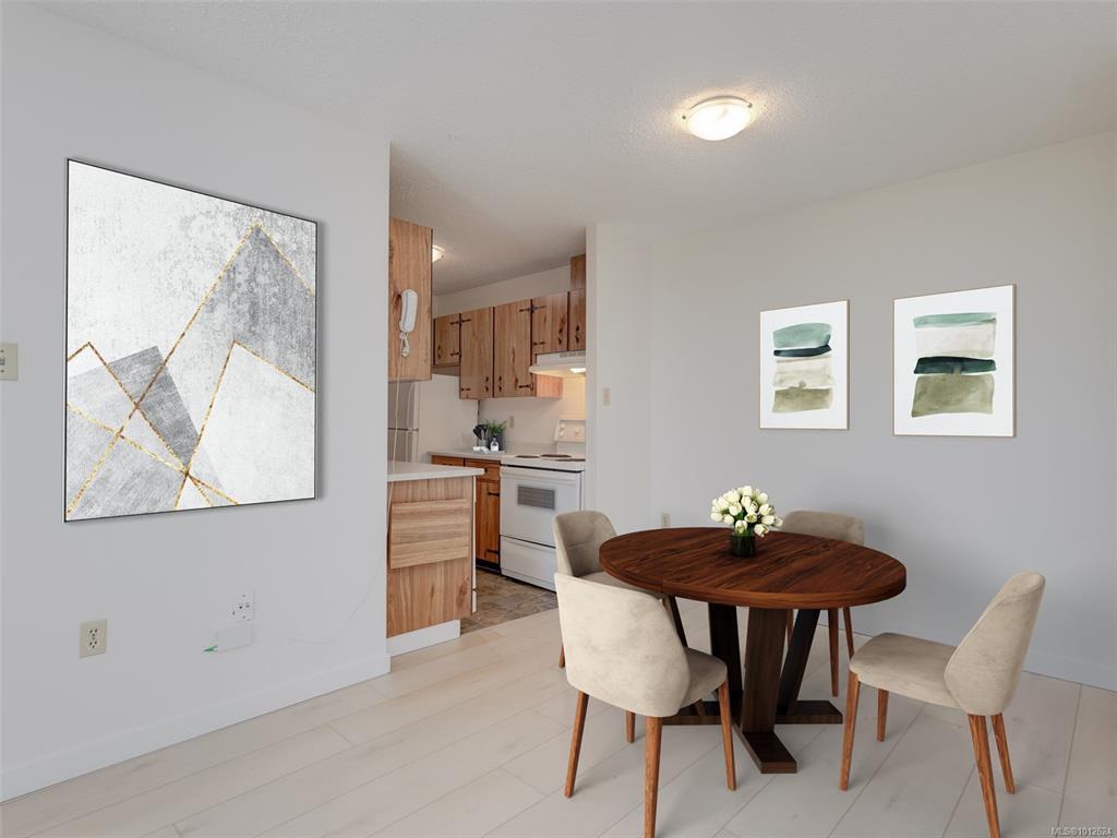 Welcome to Harrington House, perfectly located on the Victoria/Oak Bay border! This SPACIOUS, open concept design 1-bedroom, 1-bathroom suite boasts nearly 700 sqft of bright, comfortable living space & features all new paint, new easy care laminate flooring, an updated bathroom, new sinks, new taps, new tub liner, new countertops, etc. It has a large living room, a functional galley kitchen & a roomy dining area. This durable steel & concrete building offers secure underground parking (common EV charger available) a storage locker, a games/rec. room, a social room, bike storage, a workshop, convenient laundry just down the hall. Low strata fee covers all the usual plus heat & hot water & the proactive strata ensures peace of mind with ongoing maintenance. Ideally situated, this condo offers effortless access to public transportation, UVic, Camosun College, shopping, the Oak Bay Village, Royal Jubilee Hospital & the local neighborhood pub.