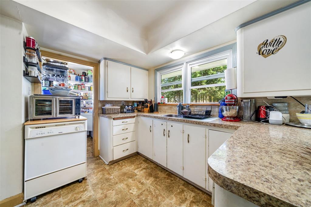 Welcome to 215 Suzanne Place, a charming family home tucked away on a quiet no-through road. Set on an expansive 12,197 sq. ft. lot with two driveways, this property offers ample parking and a spacious fenced yard—perfect for kids, pets, and entertaining. The main level features 3 bedrooms, a 4-piece bath and a bright living room with oversized windows. Downstairs, a self-contained 2-bedroom suite with 4-piece bath provides excellent flexibility for extended family or rental income. Features include two inviting brick-encased fireplaces, coved ceilings, and elegant picture railings, adding delightful character to the space. Recent updates ensure peace of mind, including a brand-new roof, two hot water tanks, perimeter drain work, and vinyl windows. Conveniently located near excellent schools, major bus routes, and the Gorge Waterway, this home combines comfort and practicality in one of Victoria’s most desirable areas.