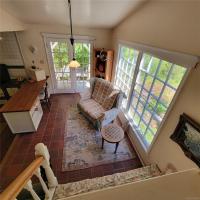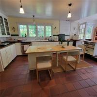 Inside, the oversized kitchen feels like something from a novel, featuring a walk-in pantry, large garden-view windows, a Moffat gas stove, and a super-efficient Bavarian woodstove with porcelain-coated iron tiles. The main living area is bright and inviting with a wood-burning fireplace and plenty of space for entertaining or enjoying quiet moments in nature. Upstairs, you’ll find spacious bedrooms, a cozy den, and even a secret passageway.
