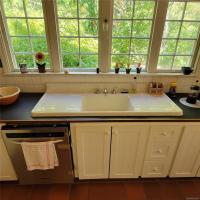 Step outside to a large, covered porch overlooking mature gardens, fruit trees, and a generous vegetable plot, all connected by winding pathways. A large pond offers irrigation potential, while your 215’ drilled well (30 GPM) provides an exceptional supply of fresh drinking water—truly rare for Lasqueti Island.