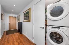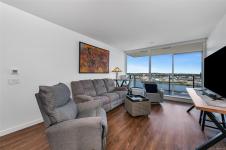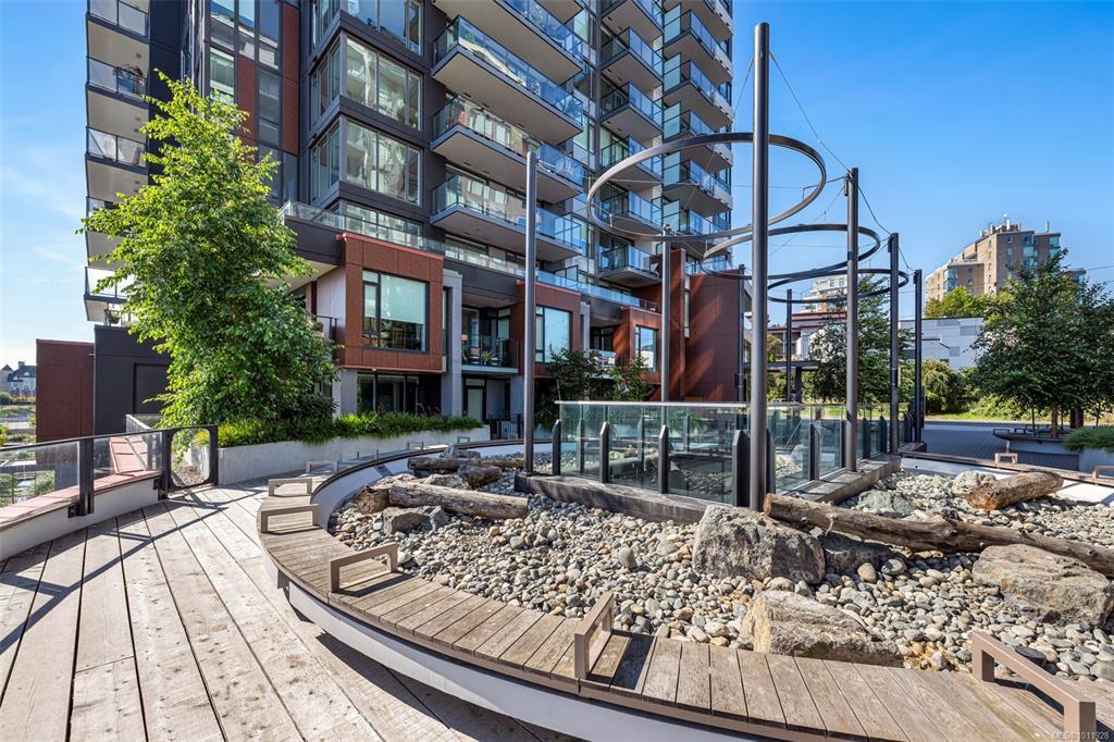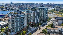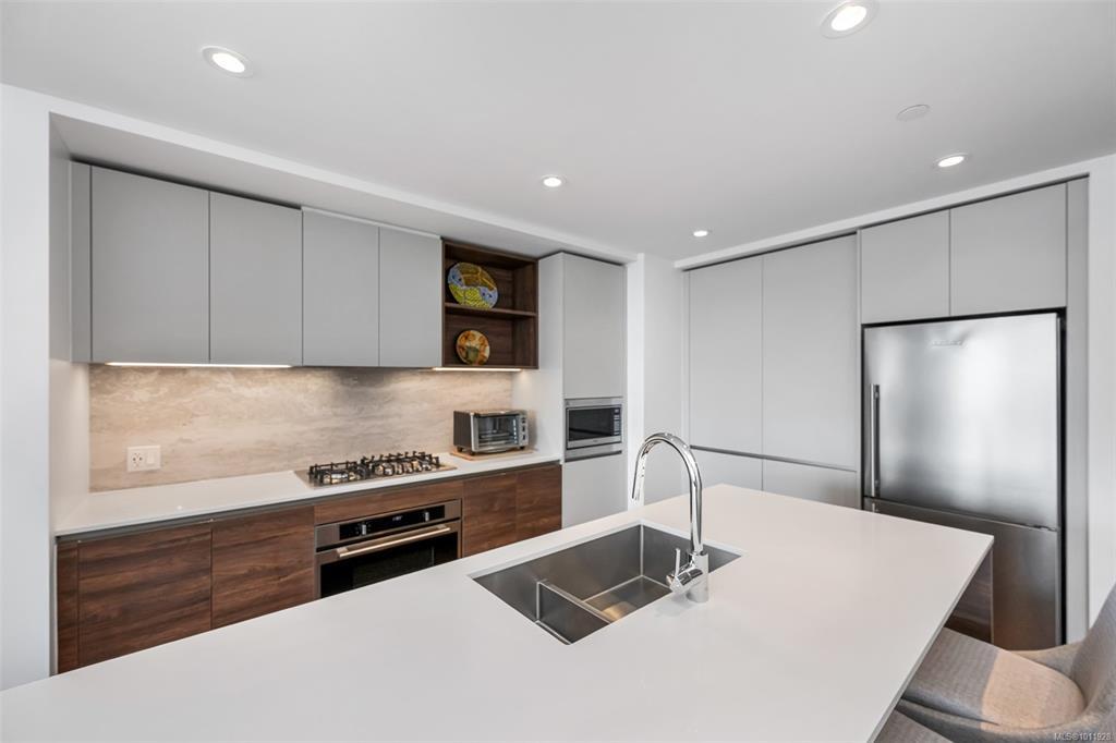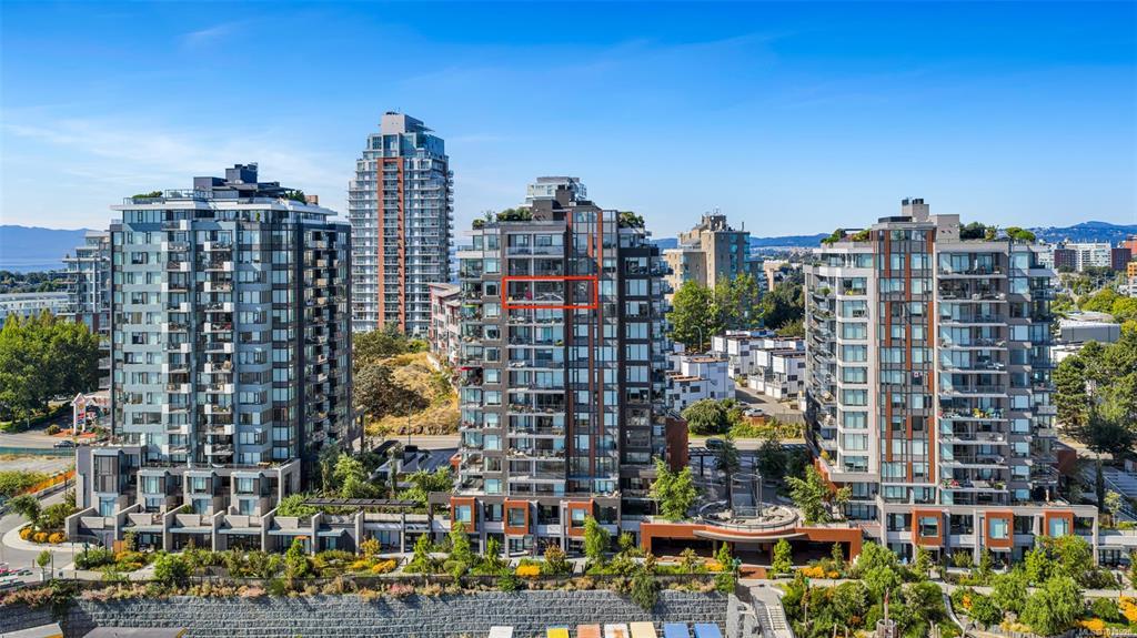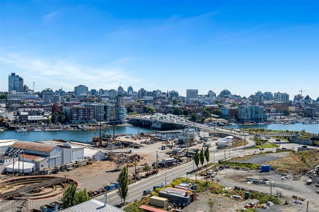 Elevated on the 11th floor, this 2 bed/2 bath home showcases sweeping panoramas of the city, ocean & mountains - enjoyed from both the expansive 179 sq. ft. balcony & the light-filled interior. Inside, luxury flows through an open-concept plan anchored by a chef’s kitchen with quartz island, gas range & custom cabinetry - equally perfect for weeknight dinners or weekend entertaining. The primary suite feels like a private retreat with a walk-through closet & spa-inspired ensuite. A thoughtfully separated second bedroom & full bath create comfort & privacy for family, guests or dedicated office. This home also includes secure u/g parking & storage locker. At Dockside, lifestyle matches location - enjoy curated amenities including a fitness centre with Peloton bikes, rooftop terrace w BBQs, residents’ lounge, pet wash station & bike storage. Step outside to the Galloping Goose, cafés, dining & downtown. Pet-friendly, rental-friendly, and still under warranty. Built by BOSA Development.