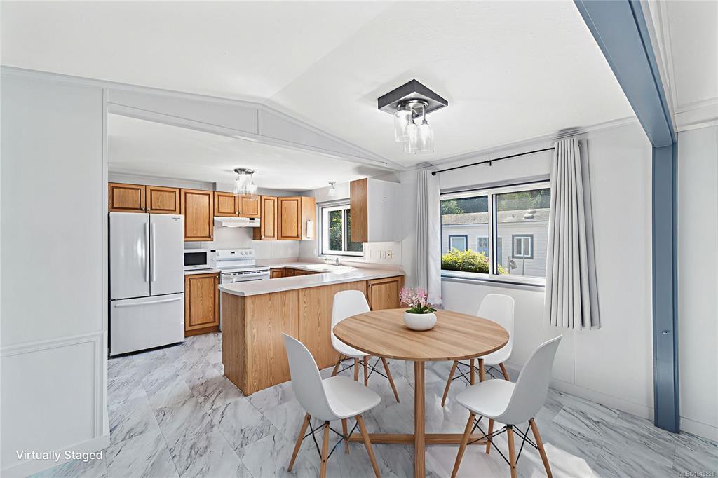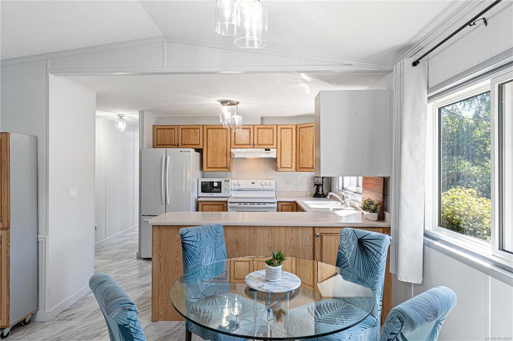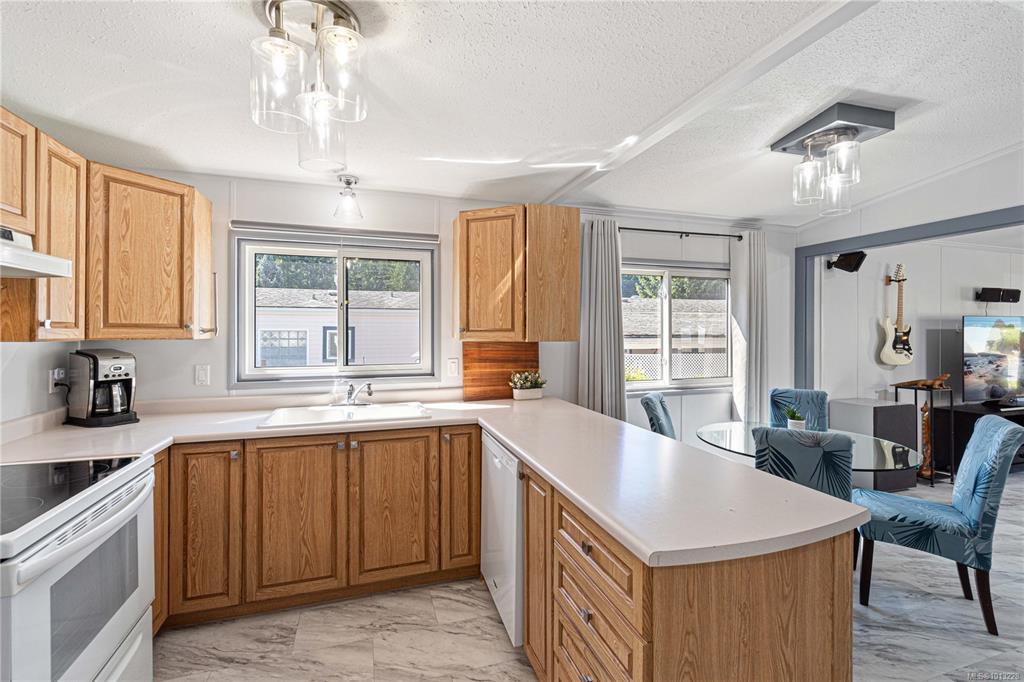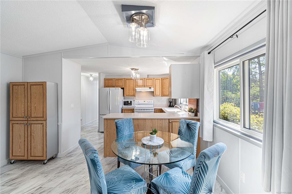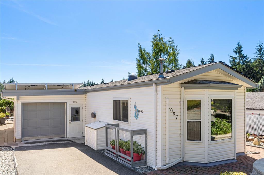 TURN-KEY LIVING! This upgraded 2-bedroom, 1-bath home in Willow Park, a pristine 55+ community, blends comfort, efficiency, and lifestyle. The open-concept layout is bright with newer windows and sun tunnels. Solar panels return power to the grid, resulting in hydro credits for the homeowners, along with ductless heat pumps for year-round comfort and newer appliances for convenience. The second bedroom offers flexibility for guests, a home office, or hobbies. Outside, enjoy a low-maintenance yard with irrigation, artificial turf, and wide mobility-friendly walkways. A custom BBQ deck, storage shed with built-ins, and a permitted, partially enclosed carport provide shelter and convenience. Fully turn-key and ready for quick possession, this home is a rare condo alternative offering privacy, upgrades, and nature at your door. Steps from Morrell Nature Sanctuary, it’s an ideal choice for a secure and sustainable retirement lifestyle. Measurements are approximate; verify if important.