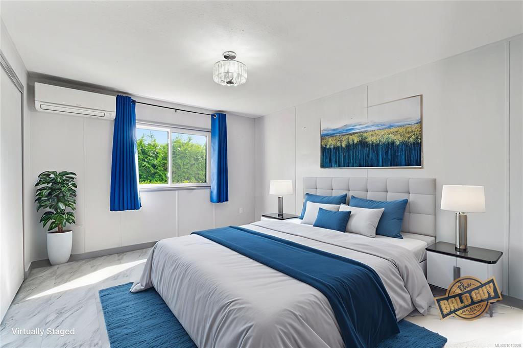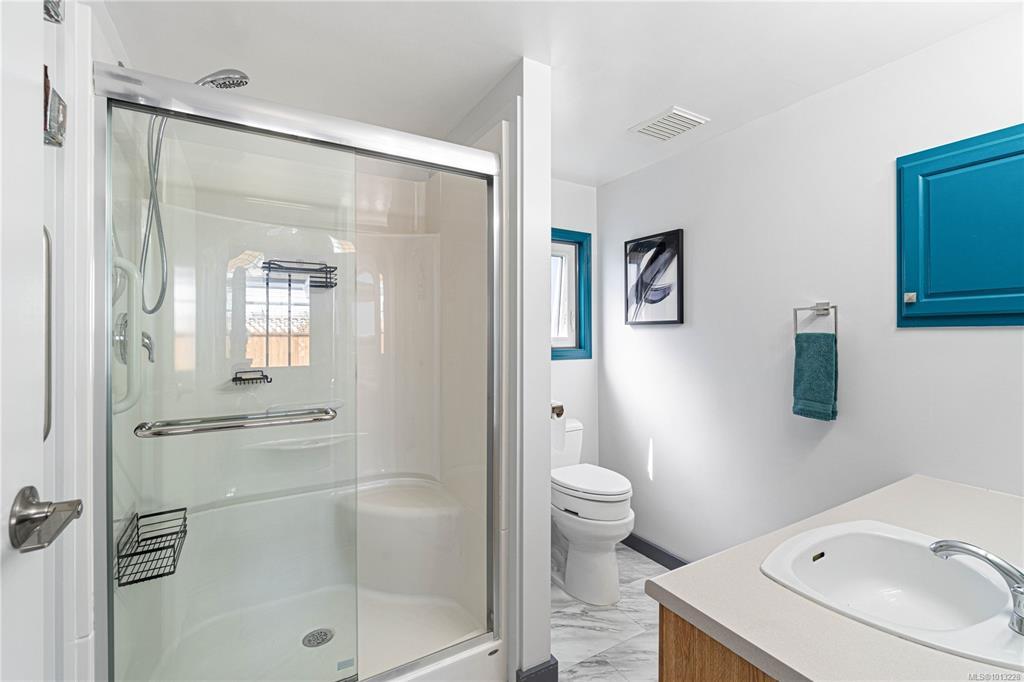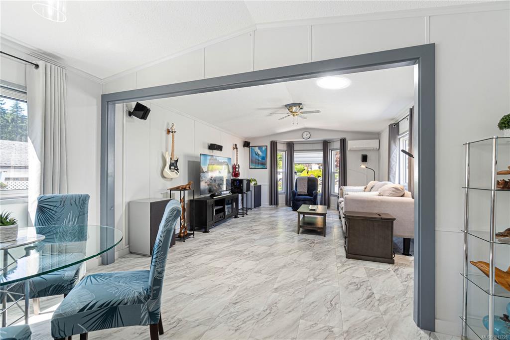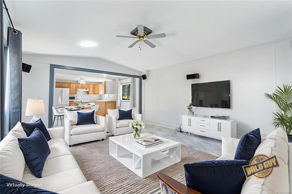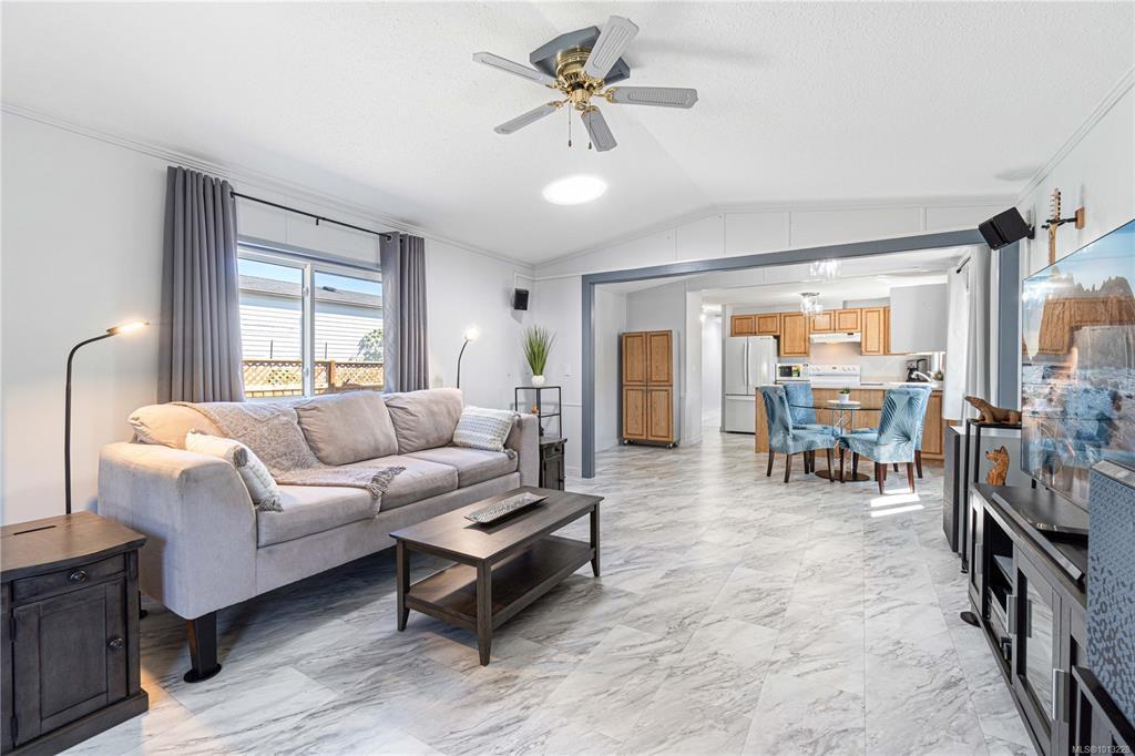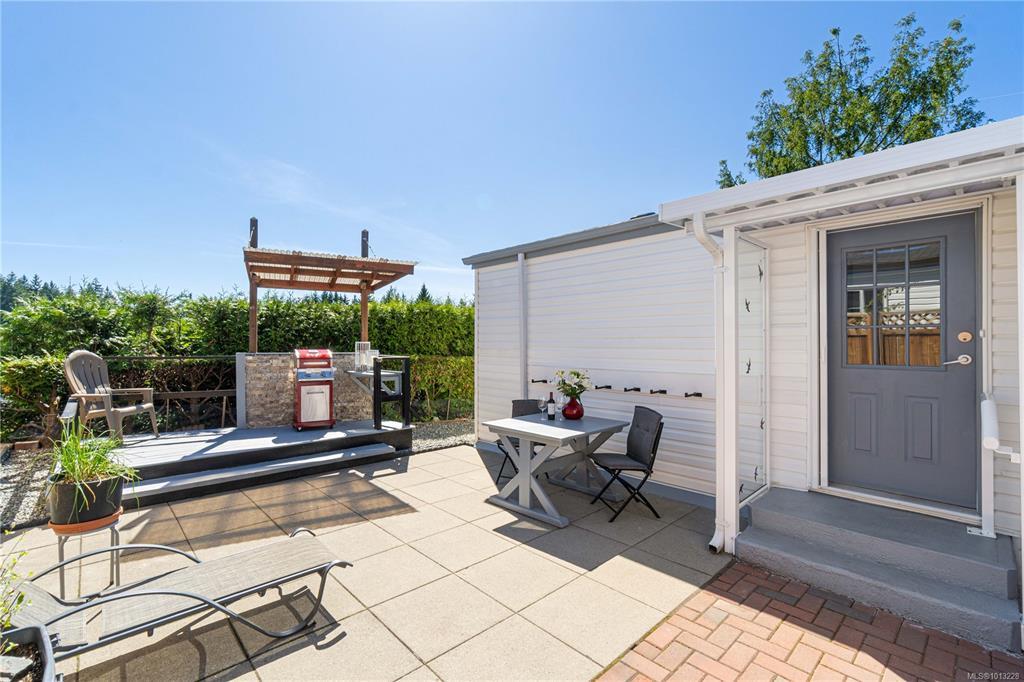 TURN-KEY LIVING! This upgraded 2-bedroom, 1-bath home in Willow Park, a pristine 55+ community, blends comfort, efficiency, and lifestyle. The open-concept layout is bright with newer windows and sun tunnels. Solar panels return power to the grid, resulting in hydro credits for the homeowners, along with ductless heat pumps for year-round comfort and newer appliances for convenience. The second bedroom offers flexibility for guests, a home office, or hobbies. Outside, enjoy a low-maintenance yard with irrigation, artificial turf, and wide mobility-friendly walkways. A custom BBQ deck, storage shed with built-ins, and a permitted, partially enclosed carport provide shelter and convenience. Fully turn-key and ready for quick possession, this home is a rare condo alternative offering privacy, upgrades, and nature at your door. Steps from Morrell Nature Sanctuary, it’s an ideal choice for a secure and sustainable retirement lifestyle. Measurements are approximate; verify if important.