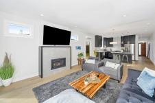 This stunning home is located in a great neighborhood on a fully fenced, pet-friendly nearly 6,000 sq ft laneway lot. Main floor has a spacious open living space, perfect for entertaining. The den/office/playroom provides flexible space for your family's needs or use as a potential guest bedroom. The gourmet kitchen is a chef's dream, featuring upgraded Samsung stainless steel appliances, gas range, ample counter space, and storage. The legal 1BR suite has a separate meter and entry, offering rental income potential or extra living space for family members. Upstairs, the King-size Primary features a walk-in closet and ensuite with radiant in-floor heating and tiled shower. 2 more large bedrooms and a full bath complete the upper level. Smart Laundry for added convenience. Other features include a garage with double driveway, split air heating/cooling system, tankless hot water, HRV, and remaining 2-5-10 New Warranty. Don't miss this incredible opportunity to own your dream home!