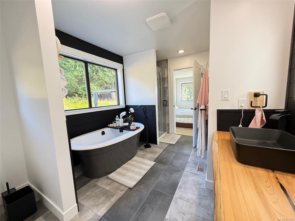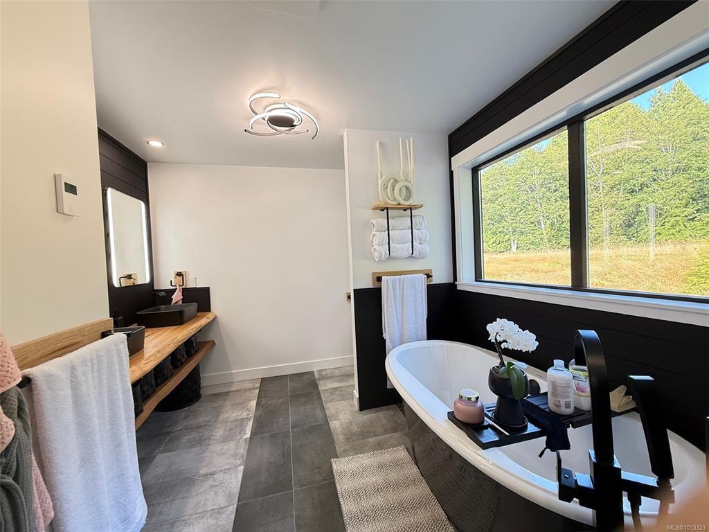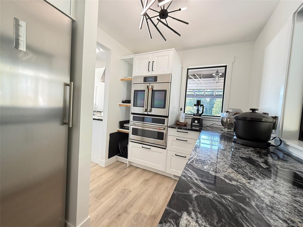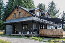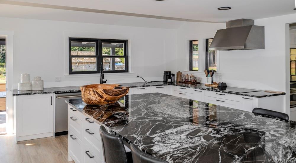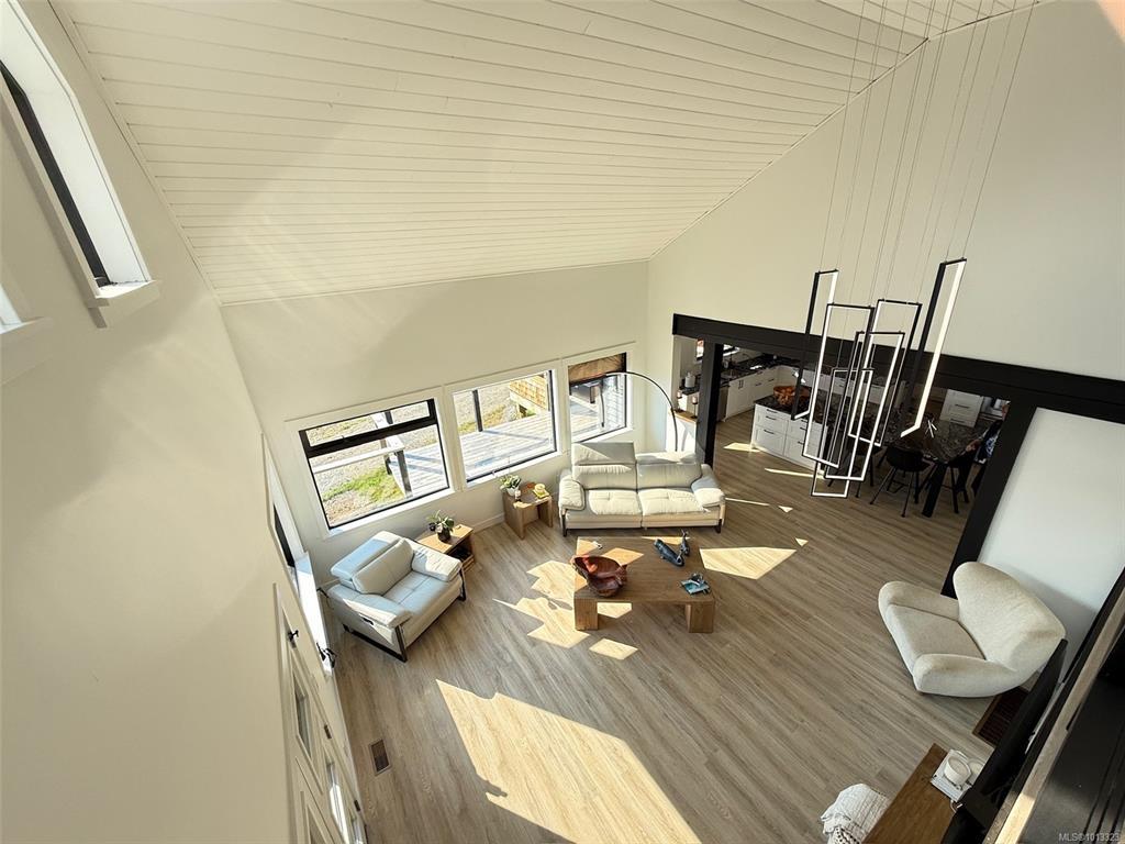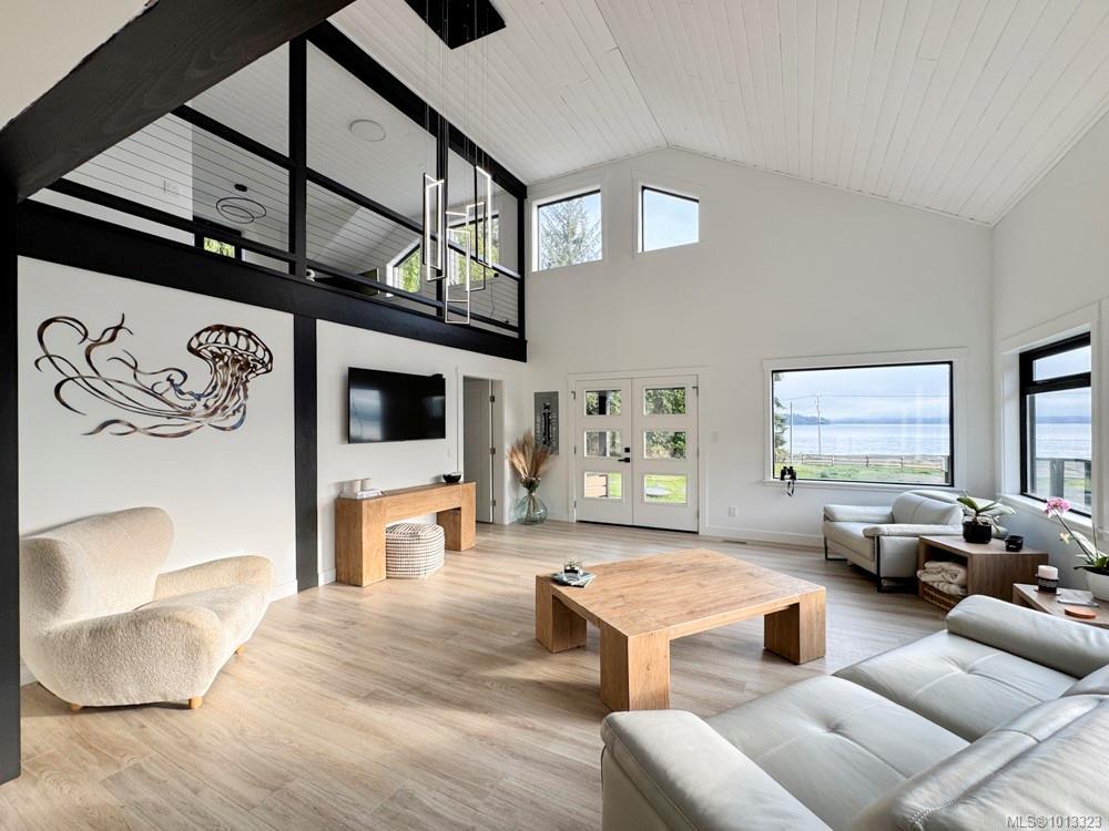 The gourmet kitchen showcases premium appliances, large granite island, a butler's pantry and lots of cabinetry. A great space of daily living as well as entertaining. The primary bedroom is on the main floor, with a spa like ensuite and walk-in closet. Main floor also includes the laundry room. The open stair case leads up to 2 more bedrooms, a bonus room (could be used for a small gym) another spa like bathroom and a great loft area - for an office or hobbies. Exceptional ocean and mountain views from the loft. A must see property. 2 outbuildings with potential.