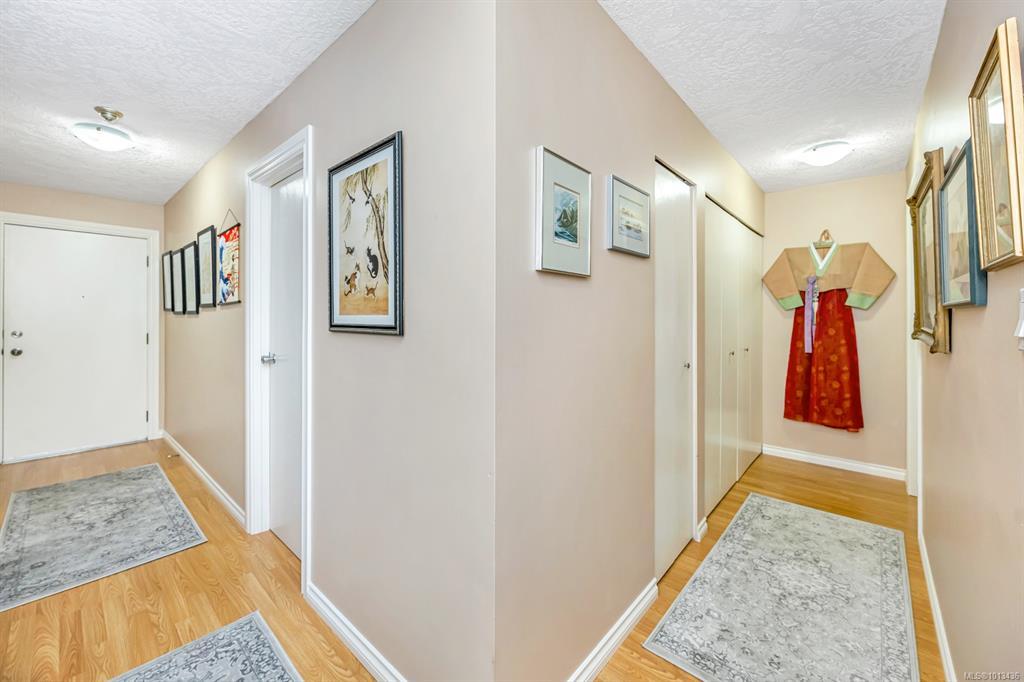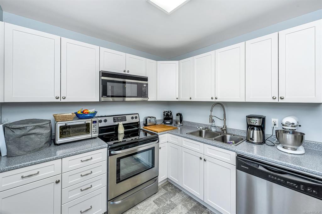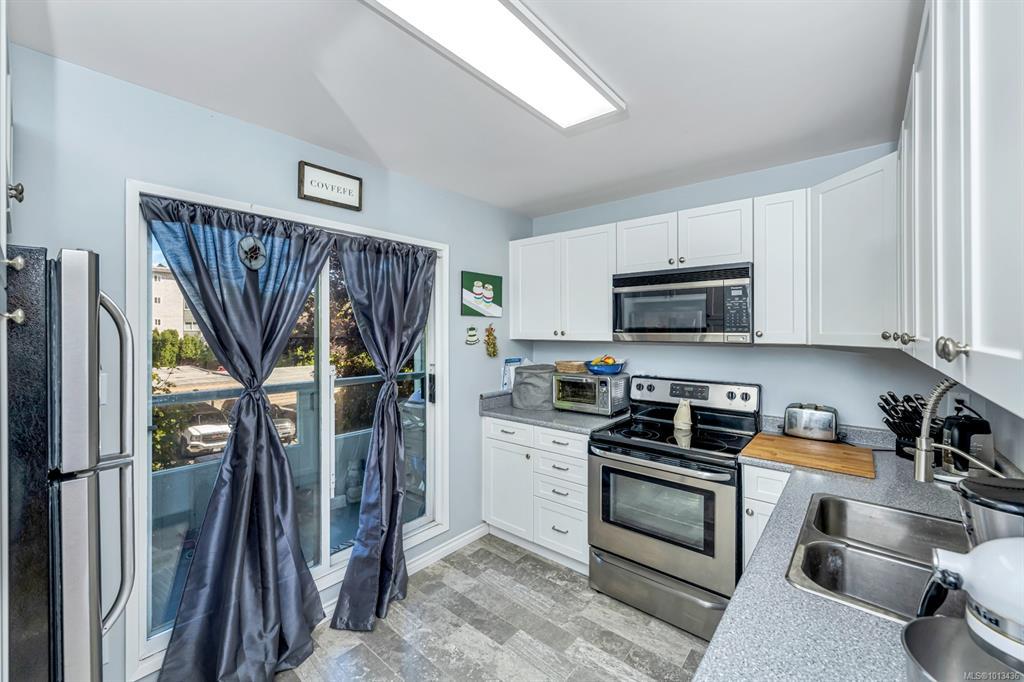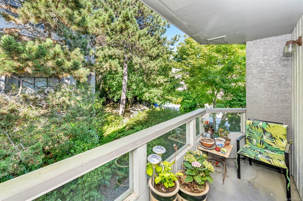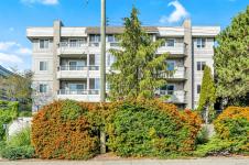 Full envelope renewal has started which includes cladding, balconies, windows and patio doors. This bright family friendly 2 bed 2 bath corner condo boasting over 1200sqft is located right across from the newly redone Rutledge Park with splash pad for the kids. 2 blks from Mayfair mall and 4 blks from Uptown giving it a high walk score of 87. The generous bedroom sizes are separate enough to give each other privacy. Perfect for a family or a two person purchase. There are 3 balconies, allows bbq's, an updated kitchen (floors, counters, updated cabinets with drawer inserts and stainless appliances), and large living room with a cozy wood burning fireplace. The spacious Primary bedroom has a large walk-thru closet, ensuite and it's own enclosed balcony. It includes in-suite laundry, secure parking, guest parking, separate storage and the H/W tank was replaced 2020 and new low-flow toilets in 2022. Two cats are also allowed. A great place to call home!