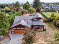 SPACIOUS, SOLAR POWERED LUXURY FAMILY HOME THAT FEELS LIKE IT’S IN THE COUNTRY & is just minutes to amenities! 35 Solar panels provide over 80% percent of power for the nearly new house. A bright, high-ceiling, open floor plan w/ 2 identical primary bedrooms – one on main floor & one on upper floor, both with walk-in closets & spacious 5 piece ensuites with separate soaker tubs, showers & twin sinks. Large, well-designed kitchen with lots of cupboards & hook-up for gas stove. 2 more bedrooms, 4 bathrooms, heated tile & wood floors. Great for multi-generational living. Entry level design ideal for wheelchairs too. On a quiet cul de sac, the enormous, fully-fenced, private, level back yard with fruit trees & a veggie garden is ideal for kids, pets & gardeners. Open farmland across the street makes it feel remote, yet it’s only 7 minutes to groceries in Sidney. Lots of room for toys in oversize double garage. Plenty of storage. This home has it all!
