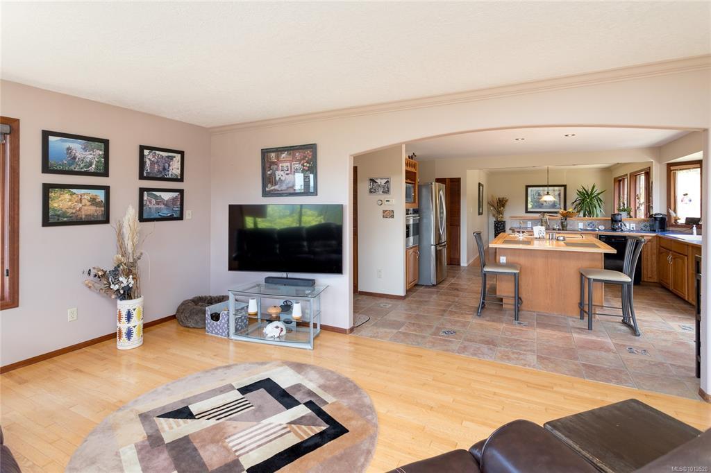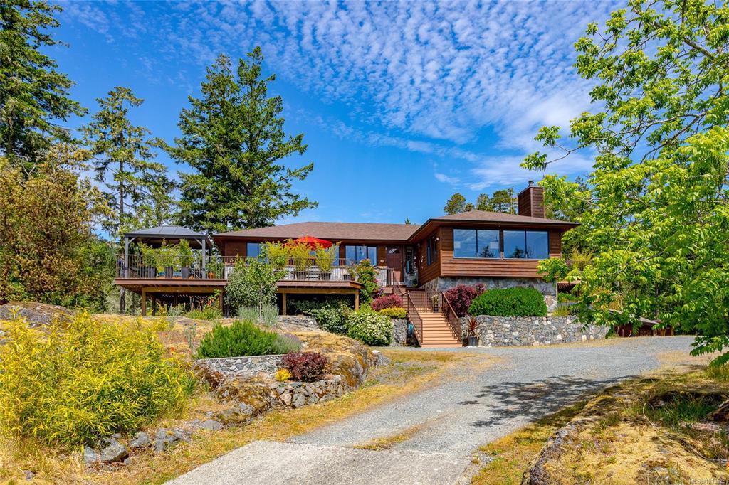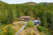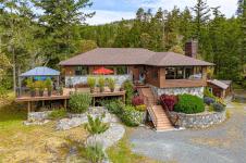 3 Houses +,Situated on over 11 parklike acres between Sooke and the Western Communities (10 min each way) with commanding views of Sooke Harbour and the Olympic Mountains. Three separate homes, each with privacy and access via a wrap-around driveway. Main home offers 2,000 sq ft of single-level living, 3 beds plus den, tile/hardwood floors, open kitchen with large island, living room with fireplace, and over 900 sq ft of decks for entertaining.