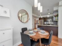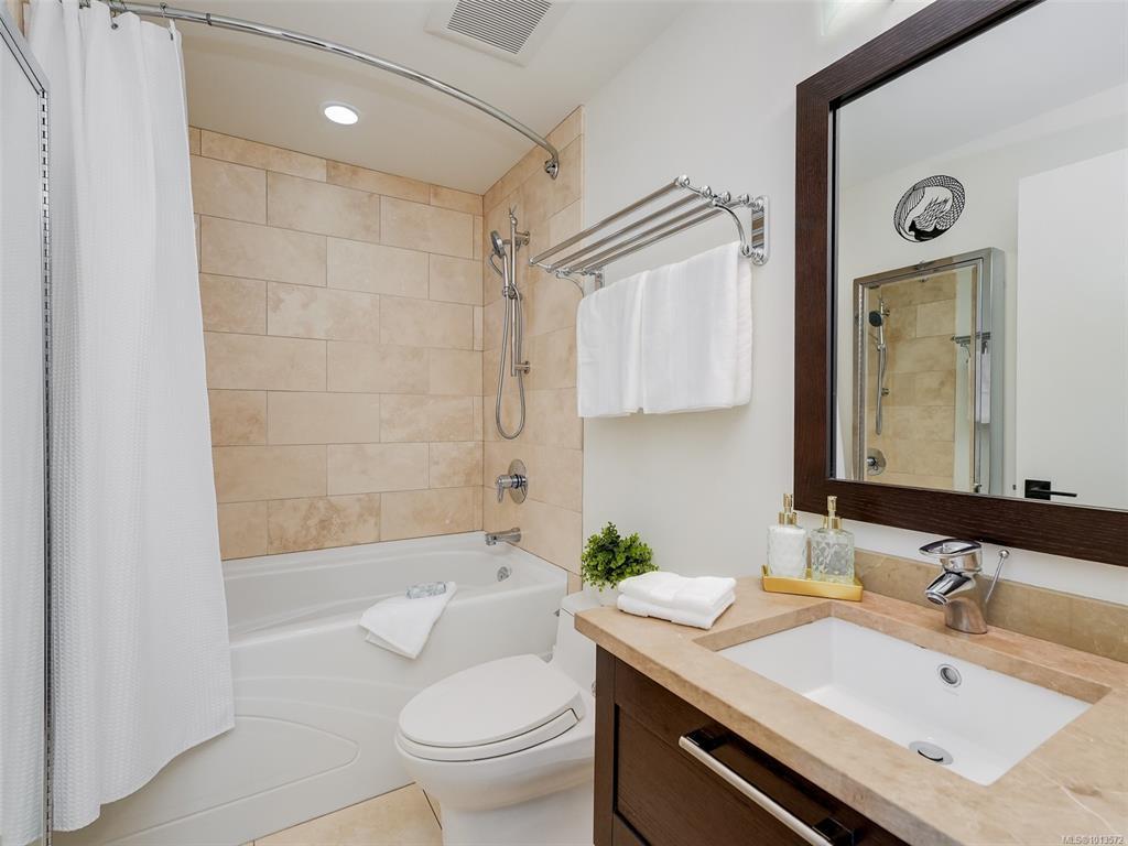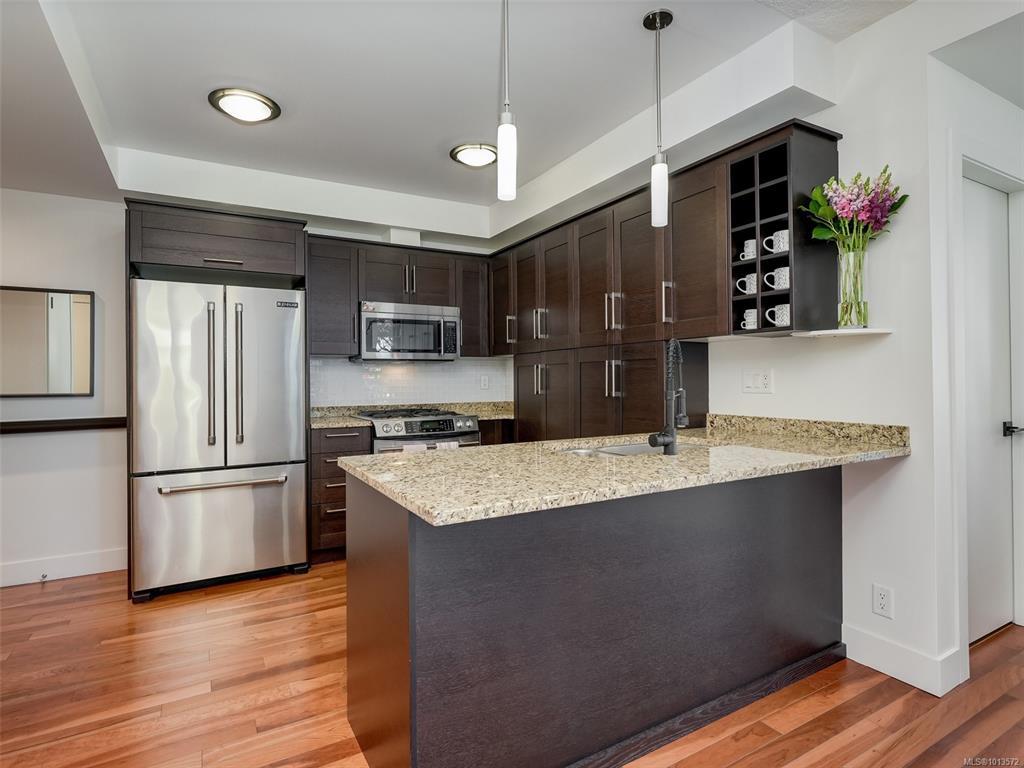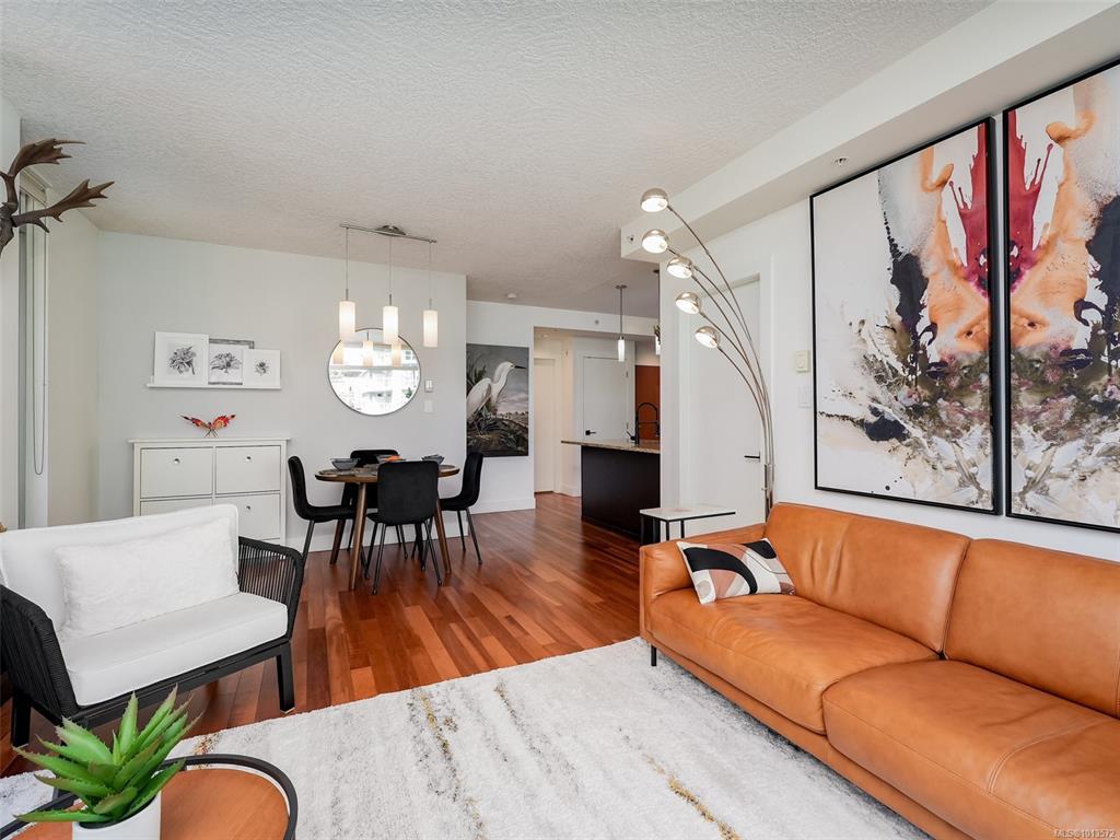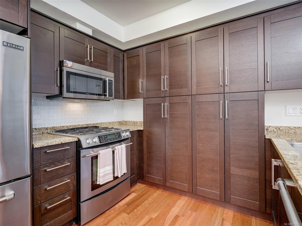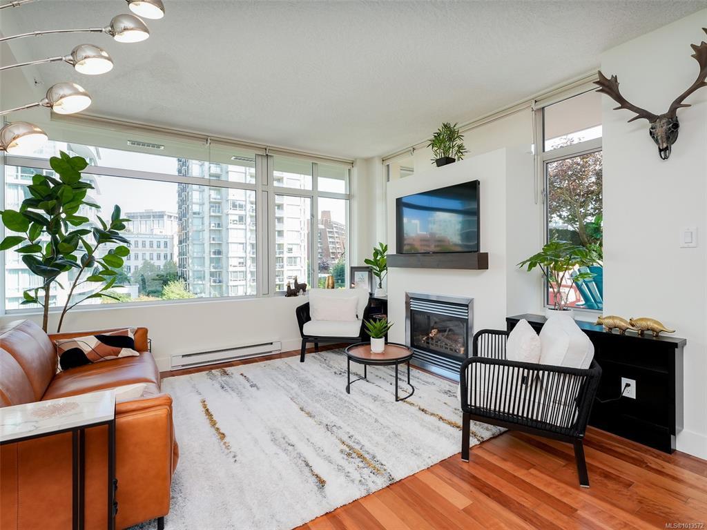 Discover refined living at Aria, one of Victoria’s most coveted addresses in the Humboldt Valley. This bright two-bedroom, two-bath corner suite is filled with natural light and features a versatile glass-enclosed sunroom—perfect as a dedicated home office, yoga space, or creative studio. A completely private 226 sq. ft. garden terrace extends the living space outdoors, offering a serene urban retreat. The thoughtful floor plan separates the bedrooms, with the second enhanced by a custom Murphy bed for added flexibility. Move-in ready and tastefully appointed, this home is ideal for those seeking a balance of work and lifestyle. Residents enjoy a strong community, with concierge service, fitness centre with sauna, lounge, workshop, secure parking, and vibrant social clubs including book, walking, and craft groups. Pet-friendly with no size restrictions, Aria blends sophistication, convenience, and connection in the heart of downtown Victoria. Truly a wonderful place to call home!