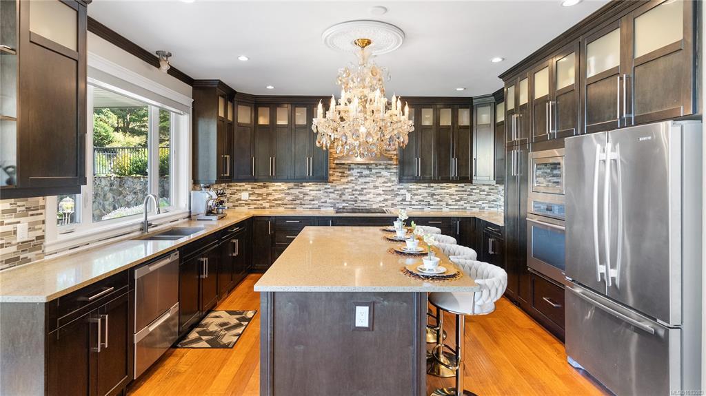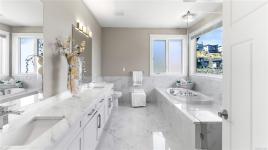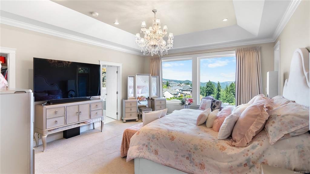 Executive 2-STOREY home nestled in Bear Mountain. This stunning home spans 4,450 sqft & offers 4 bedrooms + 4 bathrooms on ¼ acre lot. The moment you enter you'll be captivated by the timeless quality & luxury craftsmanship. The Main Level boasts an open floor plan with massive Great Room & unique coffered ceiling, custom picture windows with expansive views, extending to a gourmet chef inspired kitchen with high-end Fisher & Paykel/JennAir appliances & oversized island, all seamlessly connecting to a beautifully landscaped backyard! The separate dining is perfect for every occasion, private living room for intimate gatherings & spacious bar to unwind. Upstairs, the primary suite offers scenic views, spa-like ensuite, huge 15x10 walk-in closet & private balcony to relax, 2 additional generous sized bedrooms, PLUS a self-contained 1 bedroom LEGAL suite provides ample space for family & guests! Located just minutes from world-class golf, fine dining, shopping & outdoor activities!