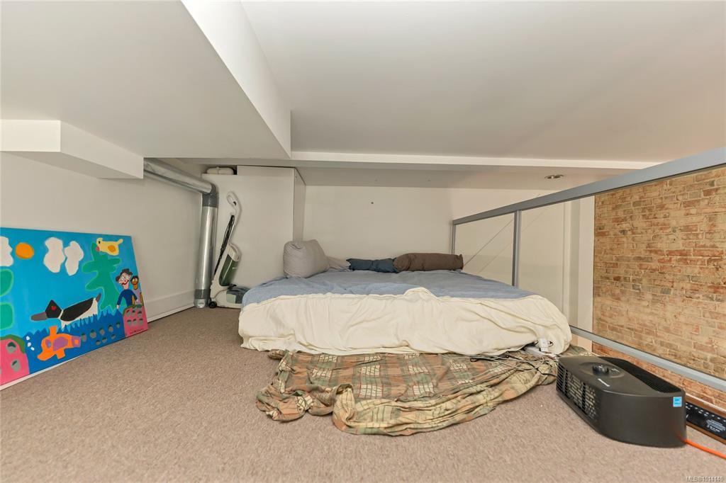 Welcome to this stunning heritage loft in Downtown Victoria, offering a unique blend of historical charm and modern amenities! The open-concept main floor is adorned with exposed brick walls and soaring ceilings that reach over 14 feet, complemented by matching tall windows that flood the space with natural light. The loft also features a versatile mezzanine, which can serve as a bedroom or extra storage. Residents enjoy access to amenities such as bike storage, catering to an active lifestyle, and a sunny rooftop patio that provides additional entertainment space with breathtaking views of the surrounding city skyline. This loft offers a truly unique living experience, where history seamlessly meets urban living.