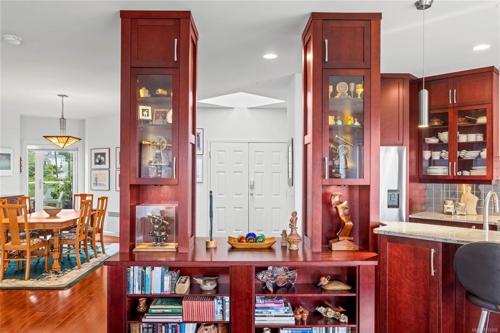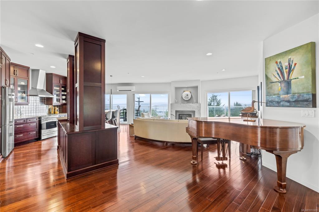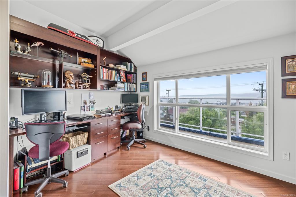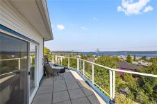 Perfectly located just minutes from downtown Nanaimo, you’ll enjoy quick access to Helijet, float planes, the Hullo ferry & all the city’s dining options. Unit 401 at 650 Prideaux St spans over 1,800 sqft of renovated living space, with an open-concept design that showcases spectacular ocean, harbour & city views from every angle. The kitchen, dining & living areas flow seamlessly together & two expansive decks extend your living space outdoors, where you can savour breathtaking sunrises & sunsets. The kitchen is equipped with extensive counter space, abundant cabinetry & thoughtful storage solutions. With 2 bedrooms plus a den & 2 bathrooms, the layout offers both comfort & flexibility. The primary suite is generous in size with a beautifully appointed ensuite, while the 2nd bedroom includes custom cabinetry, a built-in office & a high-end Murphy bed for guests. Additional features include a ductless heat pump, a rare private garage with storage & an extra outdoor parking stall.