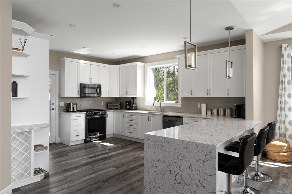 This south-facing home on a half-acre lot offers stunning lake views, easy water access, and a brand-new dock with a designated boat slip—just steps from your door. With over 3,000 sqft of living space, 6 bedrooms, and 4 bathrooms, it's perfect for families and hosting guests. The spacious 2-bedroom in-law suite has its own heat pump for comfort and privacy. The gourmet kitchen features quartz countertops, stainless steel appliances, and a natural gas stove, ideal for entertaining. The open-concept living area flows onto a large deck, creating seamless indoor-outdoor living. Both suites offer private walkout patios, and the new hot tub is perfect for unwinding. A 2-bay garage, ample parking, and all furniture included make this a truly turnkey property. Just minutes from Shawnigan Lake School, amenities, and outdoor recreation, with an easy commute to Victoria—this is lakeside living at its finest. Exempt from Foreign Buyer Ban!