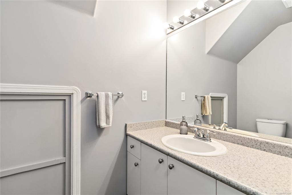 THE DESIRABLE & FAMILY FRIENDLY BROOMHILL NEIGHBOURHOOD! If you have been searching for a bright & affordable family home then you simply must see this spacious 3 bed, 3 bath half duplex located on a quiet cul-de-sac & conveniently positioned just a short walk to schools & parks & only mins to Sooke Town Centre. Step thru the front door to the bright, ceramic tiled entry. Huge tiled kitchen w/plenty of cabinetry & counter space + peninsula & breakfast bar. Formal dining rm w/slider opening to sunny back deck & private yard - ideal for BBQs & outdoor entertaining. Family rm w/gleaming oak laminate floors & cozy propane fireplace. Living rm also w/oak laminate floors & bay window, is awash in natural light. 2pc powder rm & laundry rm + large garage & plenty of storage. Up: Primary bedroom has a 4pc ensuite w/tub & separate shower, 2 more generous bedrooms both w/uplifting views of the neighbouring Sooke Hills & 4pc main bathroom. Bonus: tons of parking! A rare find & outstanding value!