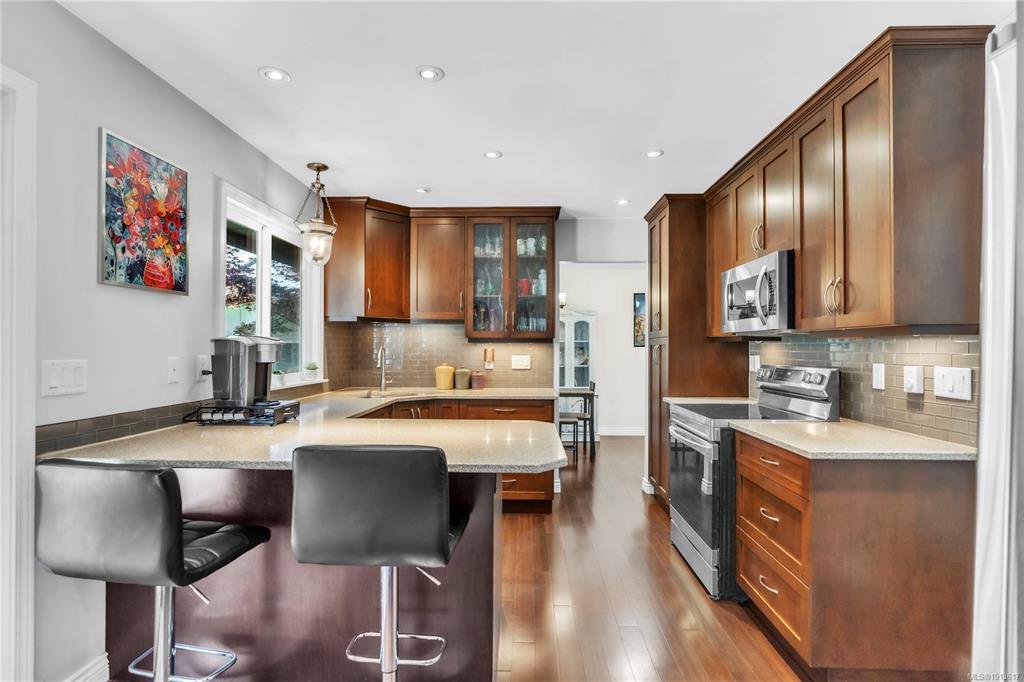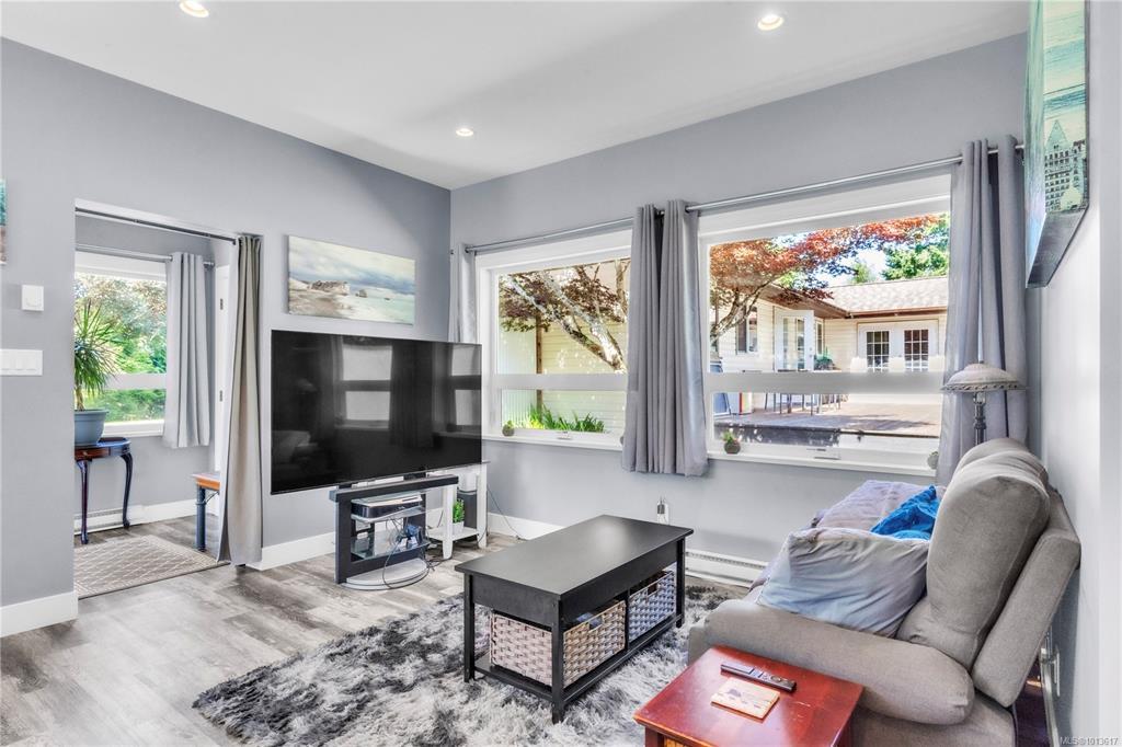 This unique property you’re not going to want to miss! Featuring a 3-bedroom + den, 2 bath main home plus a fully detached 1 bed 1 bath guest house, ideal for extended family or a rental suite. The main home offers a bright living space with rich wood floors and a cozy fireplace, flowing into the dining area and updated kitchen with stone counters, tile backsplash, and s/s appliances. The spacious primary bedroom includes a walk-in closet and 4-piece ensuite. Two additional bedrooms, one with access to a sunny den and French doors to the deck, plus a stylish main bath, laundry room, and large pantry complete the layout. Built in 2021 the guest house features open-concept living/dining, custom cabinetry, s/s appliances, in-suite laundry, its own fenced yard, and separate hydro and water meters. The fenced backyard offers two sheds, while the front includes a single-car garage and carport with a EV charger. All located on a quiet street near parks, the beach, and Sooke’s local amenities.