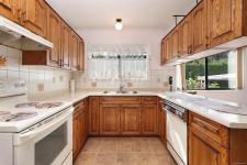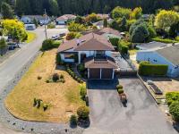 In a well-appointed community, directly between Parksville and Qualicum Beach, a 2400 sf, 1.5 storey split level home sits on a 0.2 ac corner lot. On the main floor, the first entrance showcases a large skylight that highlights abundant natural light. The living room has a striking brick fireplace with the kitchen and dining room adjacent. Below the kitchen, on the lower level, is a family room, cozied by a wood stove, with brick accents and entry to the back patio. The lower level also includes a large laundry room, functional powder room, new water heater and access to the 2-car garage. The garage also houses an extra storage room. The upper floor has three bedrooms and a 3-piece bathroom. The primary bedroom has a large walk-in closet, access to a private deck and a 3-piece ensuite. The exterior features a landscaped front yard, paved drive and fenced area for a garden. Enjoy the peace and ease of west coast living, minutes from amenities, hikes, and the ocean. Come and have a look.