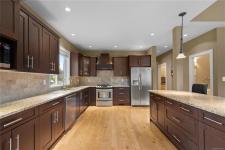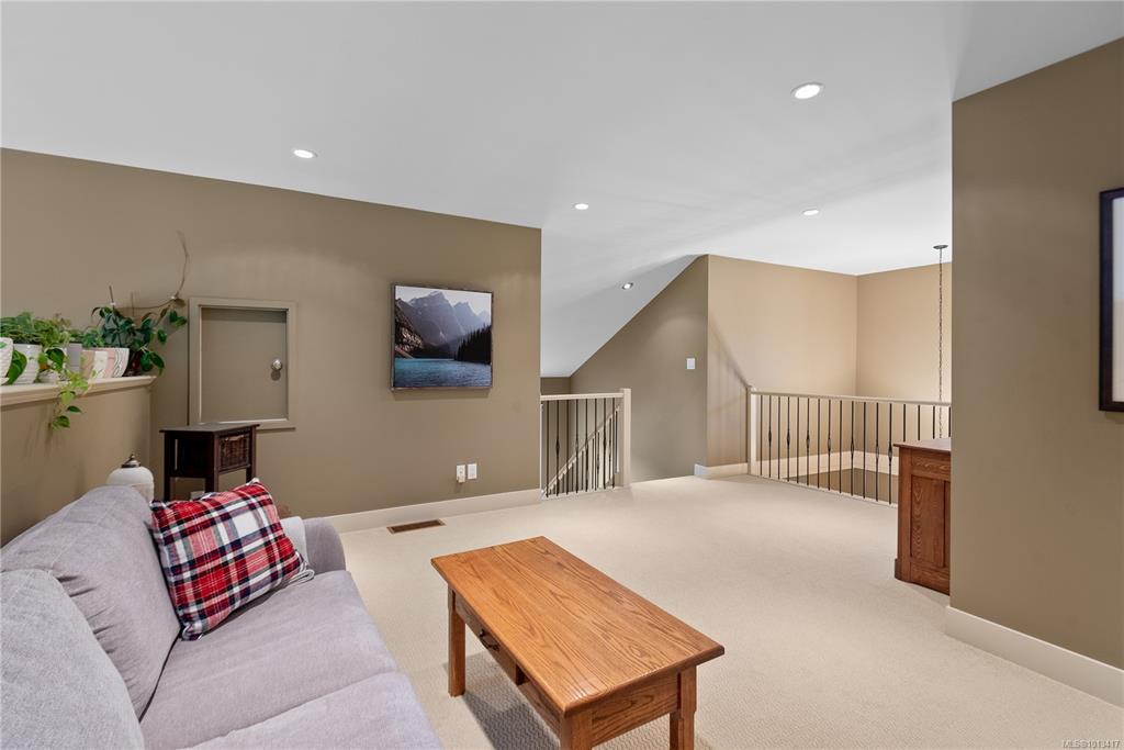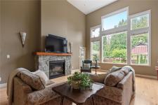 This beautifully maintained home combines elegance, comfort, and thoughtful design. Offering 3 bedrooms plus a den, the layout is ideal with the primary suite and den conveniently located on the main floor. The open living space is bright and inviting, featuring soaring ceilings, custom floor-to-ceiling windows, and a natural gas fireplace. The kitchen is a chef’s delight with rich wood cabinetry, granite counters, tile backsplash, oversized island, gas range, and generous dining area. The king-sized primary bedroom includes a luxurious 5pc ensuite with heated tile floors and walk-in closet. Upstairs, two spacious bedrooms, a 5pc bath, and a versatile family room provide excellent space for family or hobbies. Additional highlights include a heat pump, built-in vacuum, solid maple flooring, and professionally landscaped grounds with raised garden beds and fruit trees. Situated within walking distance to Cobble Hill Mountain trails, Watson Park, Evergreen School, and the Cobblestone Pub.