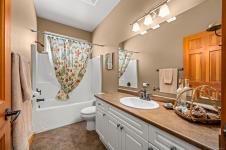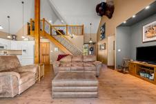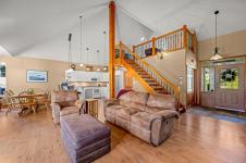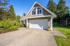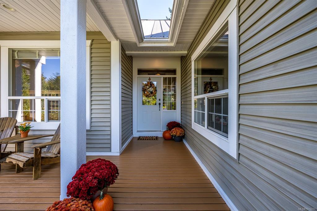 Have you dreamed of living in town while enjoying the privacy and space of a country property? This charming rancher with a bonus room offers just that. Nestled on ¾ of an acre at the end of a quiet cul-de-sac, the fully fenced lot feels magical—mature landscaping, fruit trees, blueberry bushes, and a flat yard perfect for future plans. Inside, soaring 20-ft vaulted ceilings with wood beams, a striking staircase, and a cozy wood-burning fireplace create a warm and inviting atmosphere, while 9-ft ceilings throughout the rest of the home add to the sense of space. The main floor features three bedrooms, including a primary suite with walk-in closet and full ensuite. Upstairs, a large bonus room provides a perfect second living space or entertainment area. Practical features include a metal roof, electric heat pump with A/C, 4-ft crawl space, sprinklers, and gated entry. Just minutes from town and steps from the river and walking trails, this property is a rare Campbell River gem.