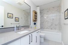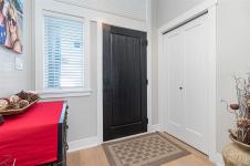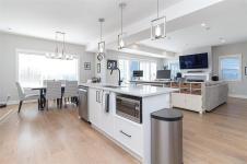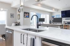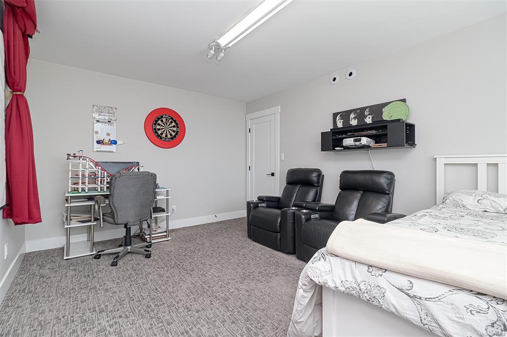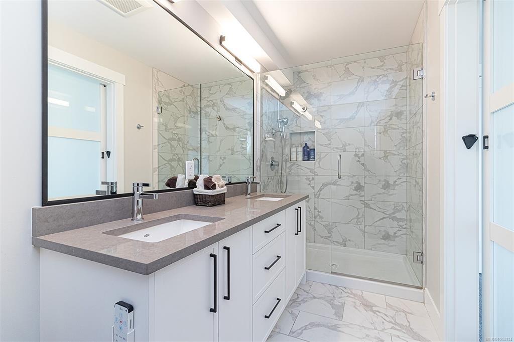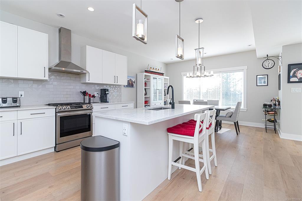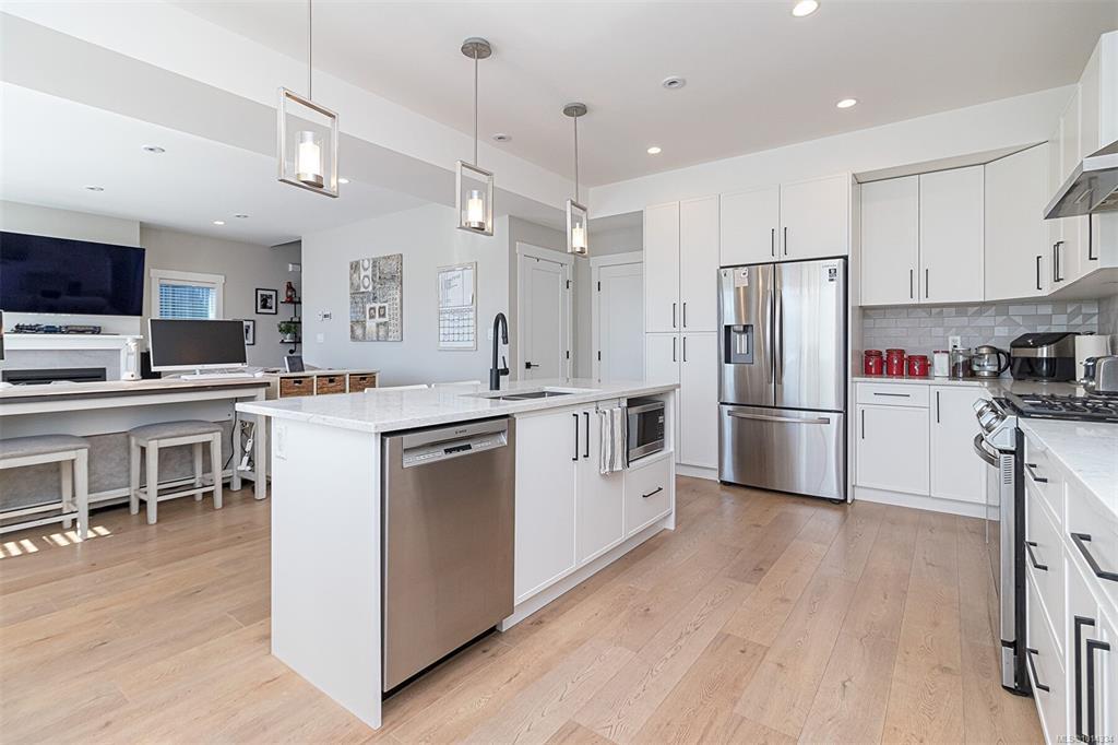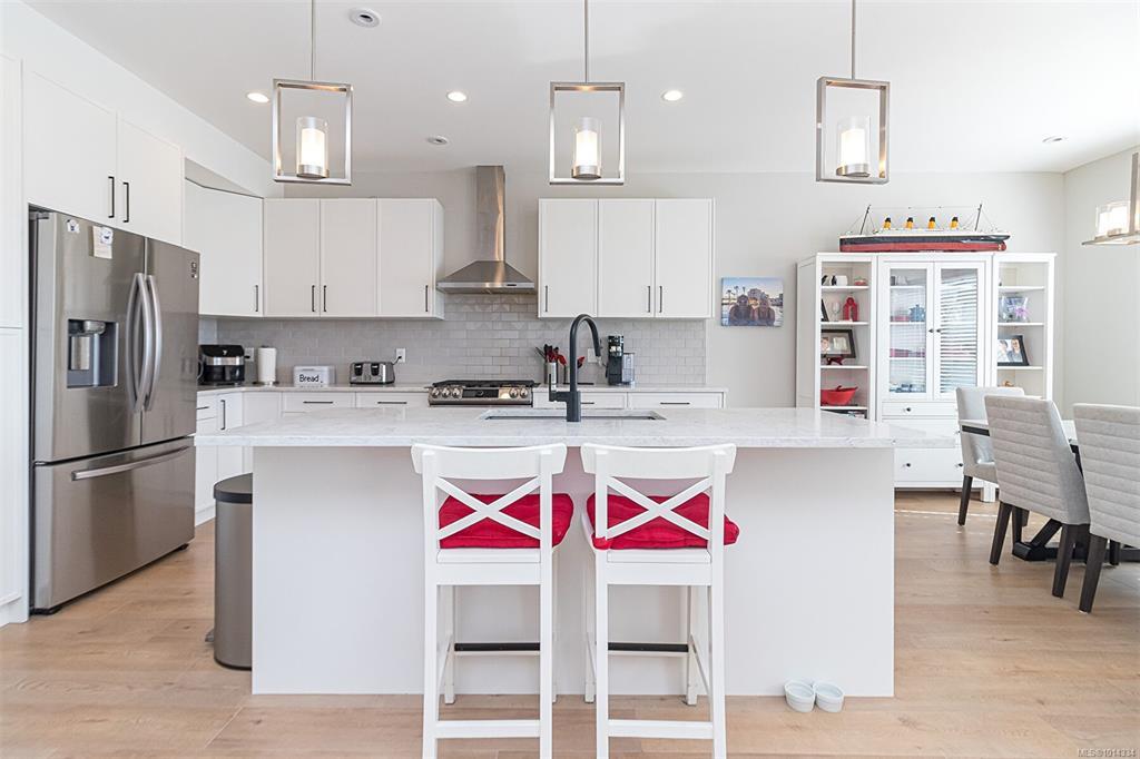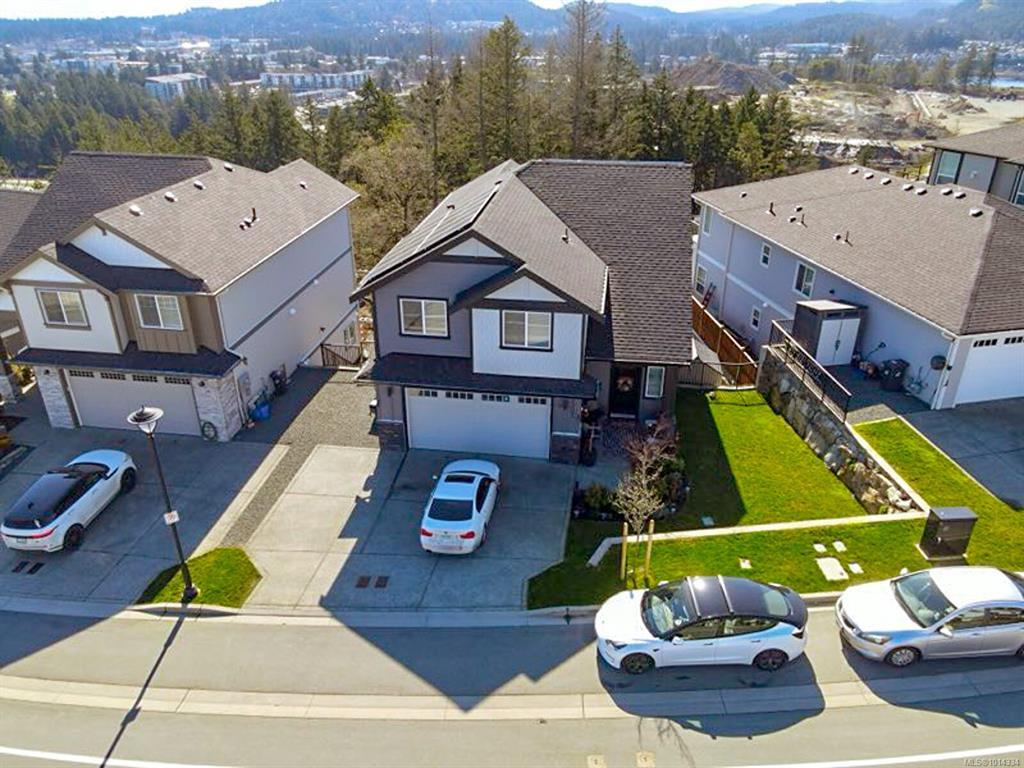 Settle into sophisticated comfort and unbeatable functionality at 1307 Flint, in South Point on Bear Mountain. This 2021-built home offers a rare and highly sought-after layout: 4 spacious bedrooms on the upper level and a quiet, legal 1-bed suite on the lowest level. Enjoy stunning south-facing views of the Olympic Mountains and peaceful parkland behind. The main floor features 9' ceilings, a bright kitchen with quartz counters, white cabinetry, s/s appliances, and gas stove, flowing into a dining/living area with gas fireplace, surround sound, and a view deck. The generous primary suite includes a walk-in closet and spa-like ensuite. Built Green and ultra-efficient with solar panels (zero hydro in main home), on-demand hot water, gas furnace, and heat pump with A/C. Landscaped yard with irrigation, veggie beds, gas BBQ hookup, and pool deck (new above-ground pool optional). Includes blinds, screens, and New Home Warranty. Close to trails, schools, and Langford’s growing amenities.