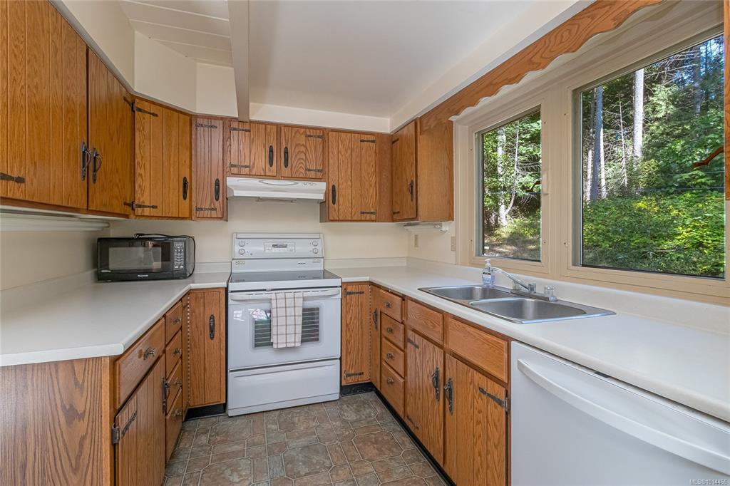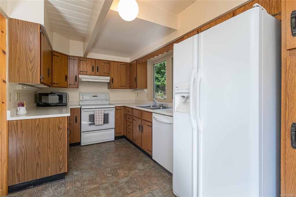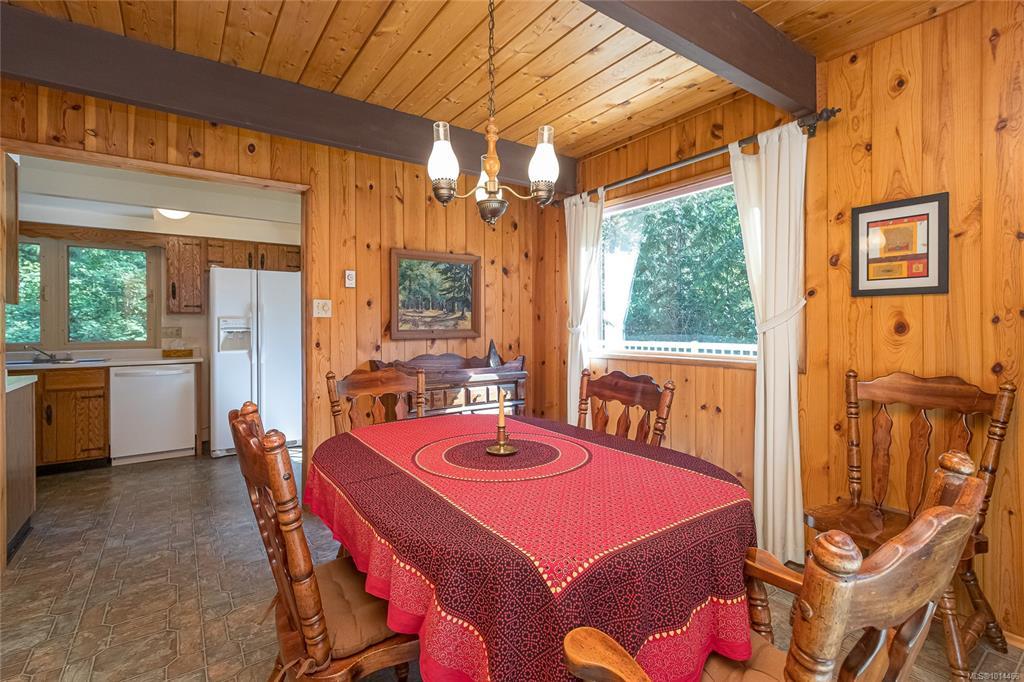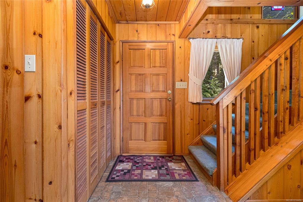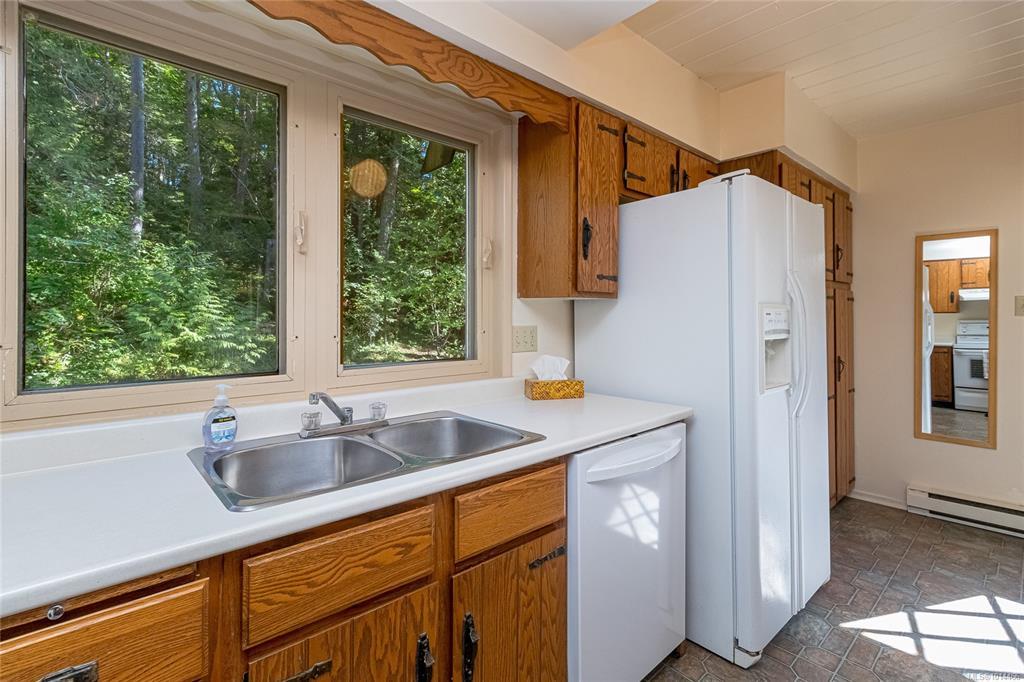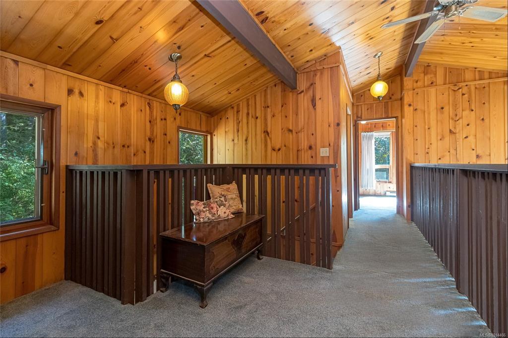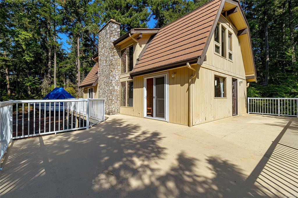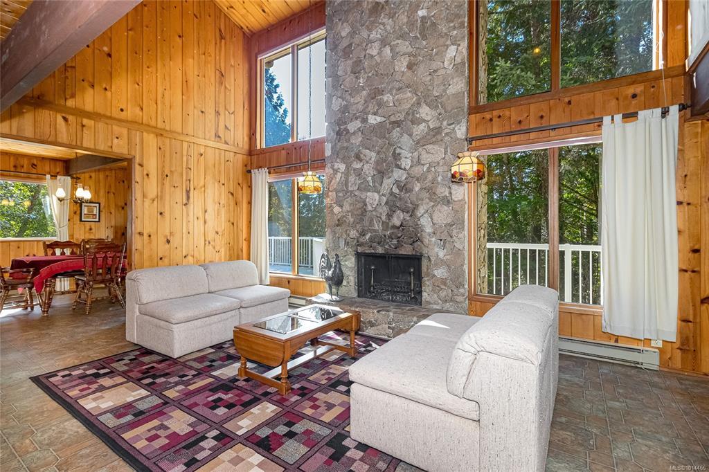 Escape to a private, serene 2-acre retreat, offering exceptional subdivision potential with 2 road frontages. This unique Lindal Cedar home welcomes you with a stunning, 2-story vaulted living room featuring a cozy rock fireplace & expansive windows that frame beautiful forest views. The main level has a classic kitchen & dining area, both with doors leading to a spacious, wrap-around sundeck. Inside, enjoy natural beauty with tongue-and-groove pine walls, ceilings, & exposed wooden beams. The durable metal roof offers lasting protection. Upstairs, 2 vaulted bedrooms offer tranquil forest views. The home also includes a convenient garage & a partially finished basement with a 3rd bedroom & roughed-in bathroom for the inlaws? Enjoy a lifestyle surrounded by nature with nearby parks, golf, & waterfront access. Located just 6 minutes from Swartz Bay Ferry Terminal, 10 minutes to Sidney, & 35 minutes to Victoria, this is a rare opportunity to own a peaceful haven with incredible potential.