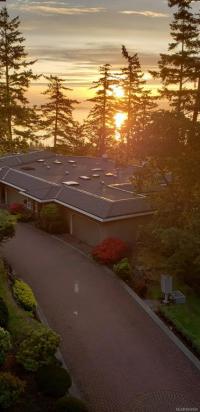 Discover an executive penthouse nestled in the forest, perfect for those seeking a harmonious blend of West Coast charm and European sophistication. Experience an executive penthouse in the forest that seamlessly blends West Coast charm with European sophistication. This exceptional unit boasts stunning ocean and mountain views, featuring a unique interior with high-end renovations. Enjoy a custom walk-in closet, a kitchen with Italian neolith and quartz countertops, a high-end Murphy bed/office set, and pot lights throughout. Electric skylights provide a refreshing breeze, while luxury appliances, Italian ceramic floors, and silk blend carpets add modern elegance. Greet local eagles soaring by as you dine. New roof. Convenient trails and amenities are around the corner—schedule your showing today!