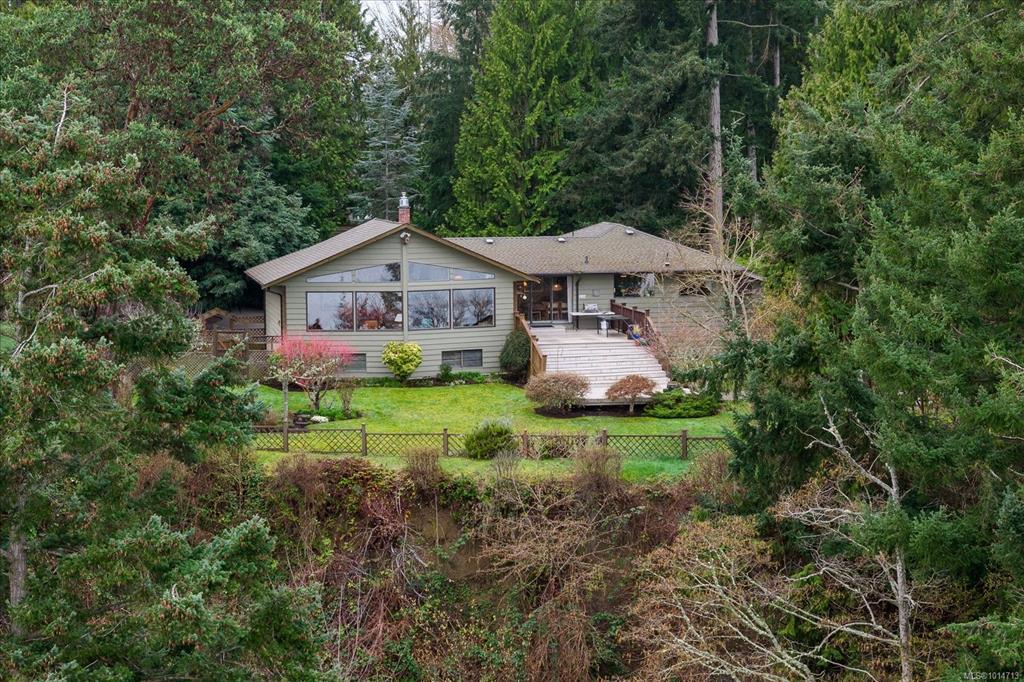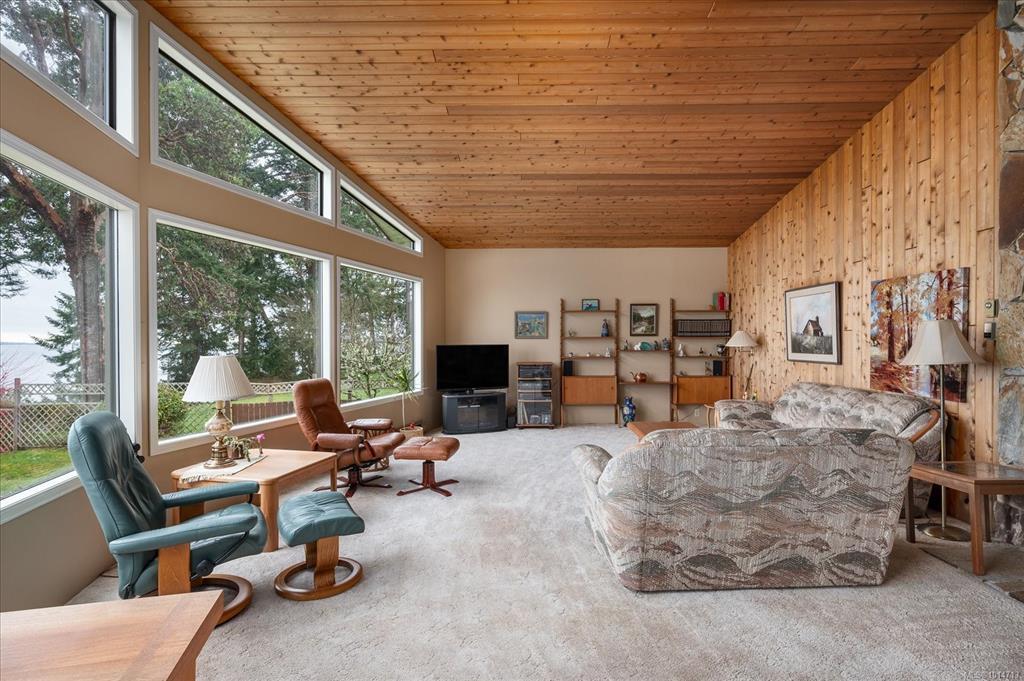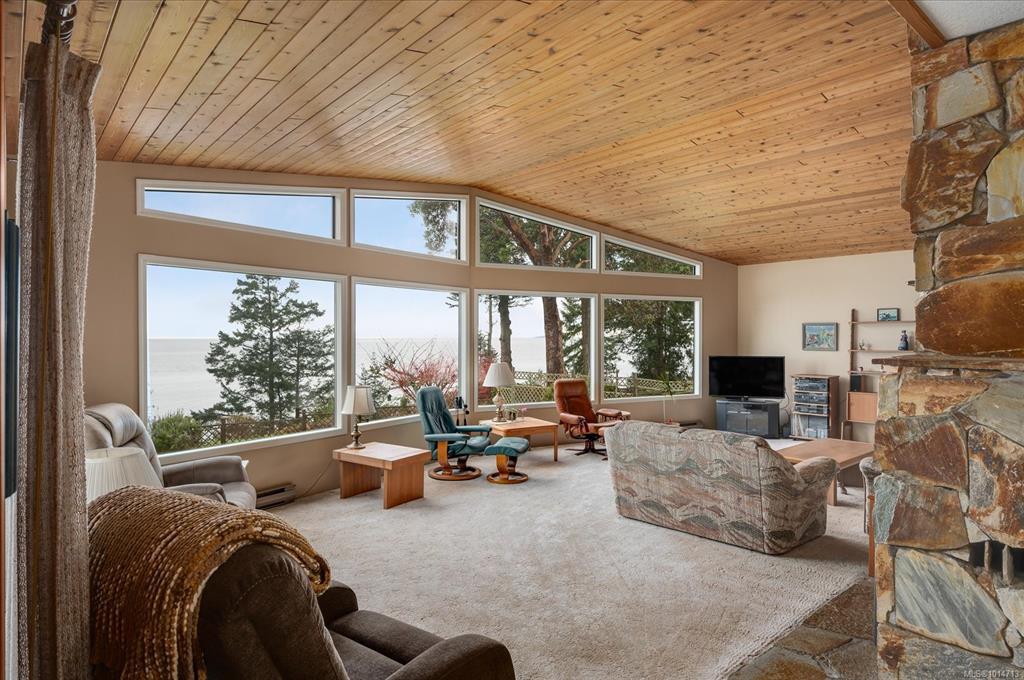Nestled on 1.3 acres just minutes from Parksville, this 3,174 sq. ft. waterfront residence blends privacy with convenience. A private forested drive leads to the home and a 569 sq. ft. detached workshop with 10-ft ceilings. The 468 sq. ft. West Coast living room boasts floor-to-ceiling windows framing panoramic views of the Strait of Georgia—where tides, eagles, whales, and ships become part of daily life. The home offers 3 spacious bedrooms and 3 baths, with a versatile walkout basement and fireplace ideal for an in-law suite. Natural wood finishes and a striking stone hearth add timeless warmth. Outside, enjoy an ocean-facing deck, lush landscaping, and private stair access to the beach. Perched high-bank for added protection and seclusion, yet only 5 minutes to shops and dining, this is more than a home—it’s a true seaside sanctuary.