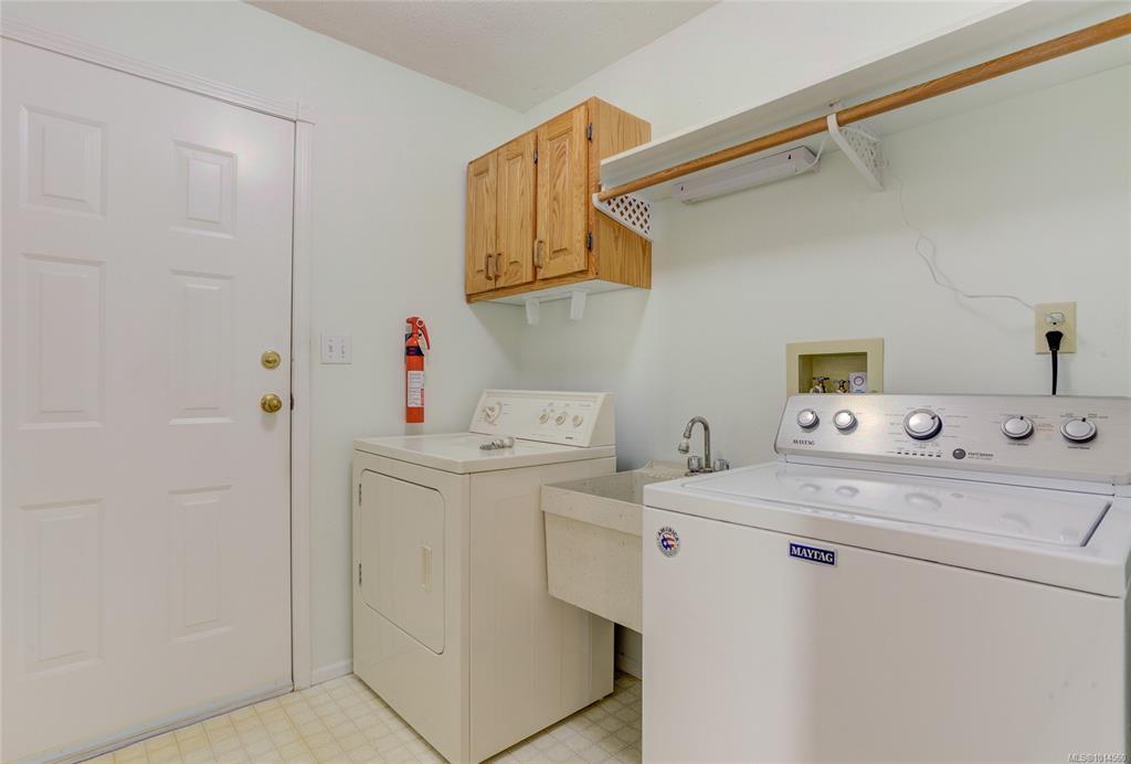 Welcome to this immaculate & well-maintained 2 bedroom, 2 bathroom rancher situated on a manicured & easy-care 0.42-acre lot. The open-concept main living area is filled with natural light & features a cozy natural gas fireplace. The spacious kitchen includes classic Oak cabinetry, charming wood accents, a convenient breakfast bar, and plenty of storage with dining room access to a large back deck —perfect for relaxing or entertaining. Both bedrooms boast walk-in closets with built-in organizers, and the primary bedroom includes a private 2-piece ensuite. Hobbyists will love the enormous 220-wired shop space located in the full-height basement—ideal for projects and storage. There's plenty of space for your toys with RV parking & a double garage and loads of privacy, backing onto greenspace. Don't miss the opportunity to own this beautifully cared-for home in a very desirable Duncan neighbourhood!