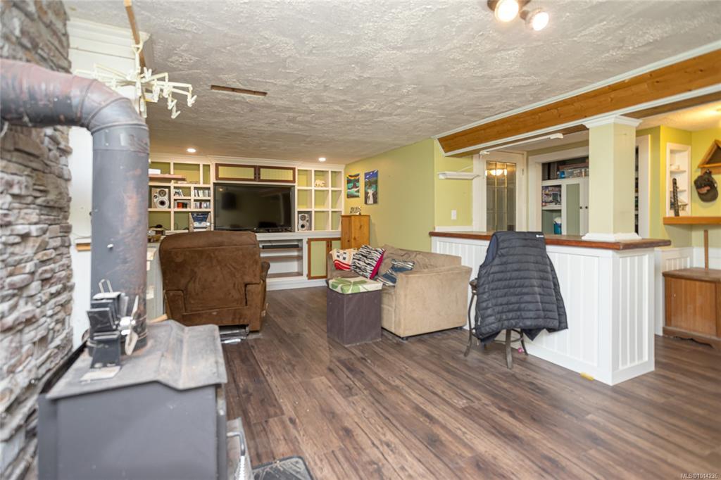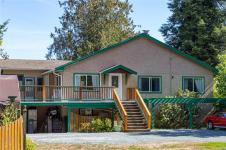 Nice solid 4 bedroom 1.5 bath family home on a private level and landscaped .43 acre lot backing on to a greenspace - Centrally located this home is in desirable Sunny Saltair and only minutes to walking trails and not far from the sea -ideally located between the towns of Chemainus and Ladysmith which offer good schools and shopping- Nice kitchen with open concept dining area that leads to a good sized living room with detailed fire surround and bright with lots of windows - The primary and second bedroom are also on the main as well as a an office/flex space and sun porch leading to a very large deck-downstairs are two very good sized bedrooms as well as a family room, 2pce bath and access to the yard and a couple of really good workshop areas -large level yard with some fencing, a covered parking area, a fenced garden and greenhouse area and room to build a good sized shop if that's what you are looking for - A good family home with room for all - Easy to show and ready to go -