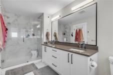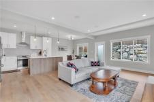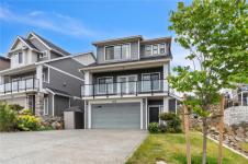 Soak in the views from this thoughtfully designed Bear Mountain home, offering nearly 2,800 sq ft, including a legal 1-bed ground-level suite. The main floor features a bright kitchen with island seating, stainless steel appliances, and an open breakfast nook + family room layout as well as a separate living/dining room with a gas fireplace and front deck to take in the sprawling views. Upstairs, you’ll find a spacious bedrooms with breathtaking views from the primary + walk-in closet and ensuite with heated floors. Additional comfort upgrades include air conditioning, heated floors in the main bath, and central vac system. Built Green certified with quality finishes throughout, this home also has landscaping with irrigation, garden bed, a gas BBQ hookup, double car garage, and a fully fenced yard. Enjoy the Bear Mountain lifestyle with world-class golf, dining, and amenities just minutes from your door.