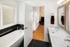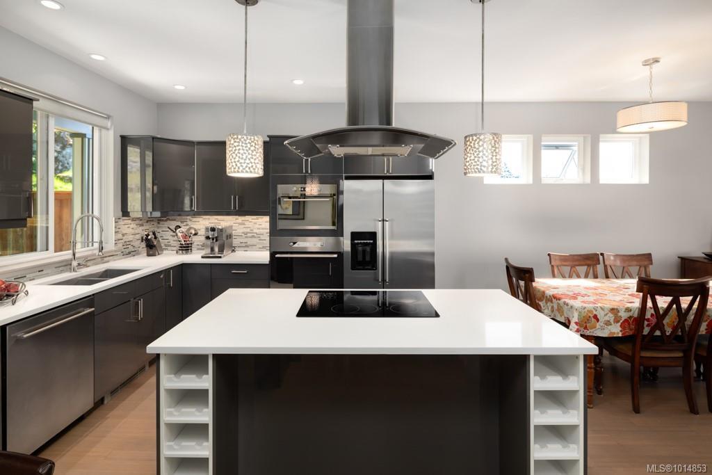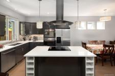 This custom-built modern home is perched on a spacious, usable lot in a sought-after neighbourhood, offering a perfect blend of style and function. From the moment you arrive, the striking exterior sets it apart, featuring a generous west-facing deck and a double garage. The fully fenced backyard is private and expansive—ideal for kids to explore and play—while conveniently visible from the kitchen or office. Inside, the sun-filled main floor boasts an open layout designed for entertaining, complete with patios off both the kitchen and living room, plus a versatile office/den. Upstairs, the primary suite impresses with its private patio, walk-in closet, and luxurious ensuite, accompanied by two additional large bedrooms, laundry, and a family bathroom. The lower level adds valuable income potential with a legal one-bedroom suite. This is a rare opportunity to own a home that truly has it all!