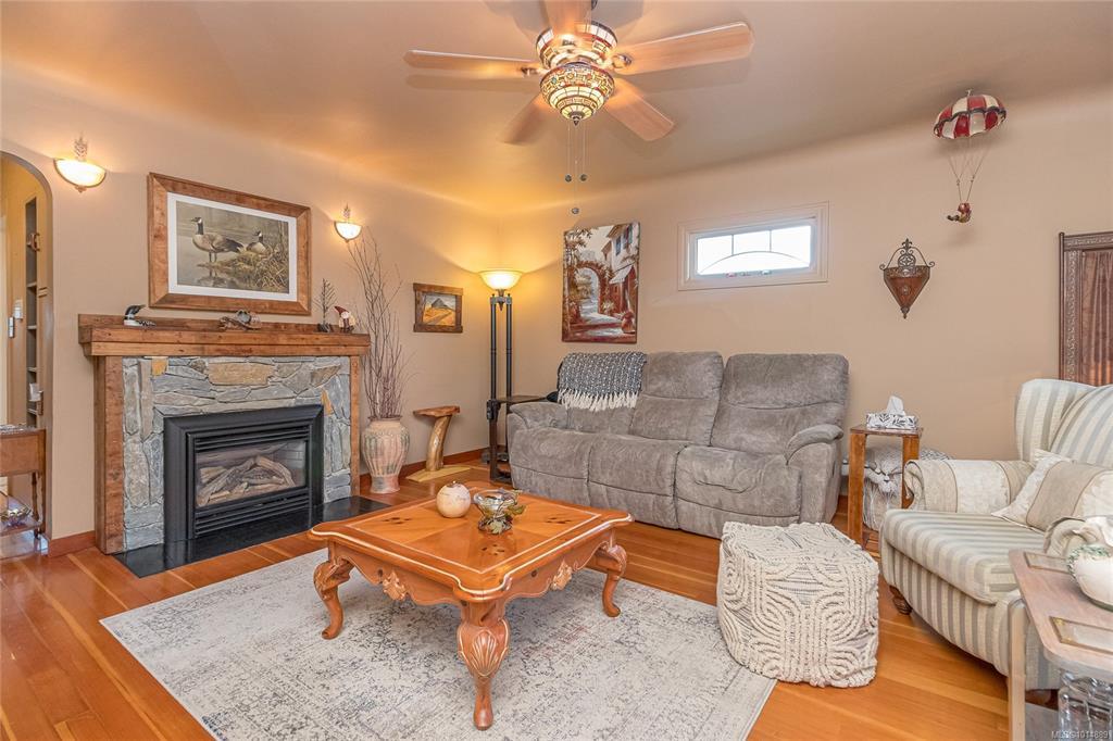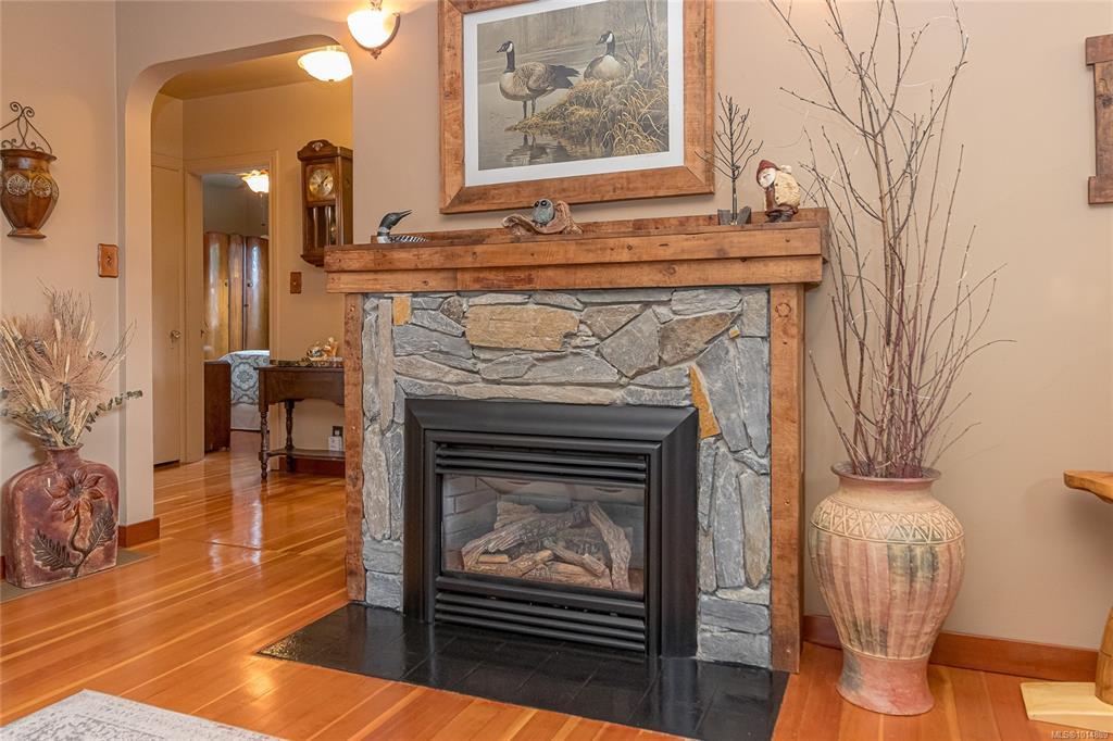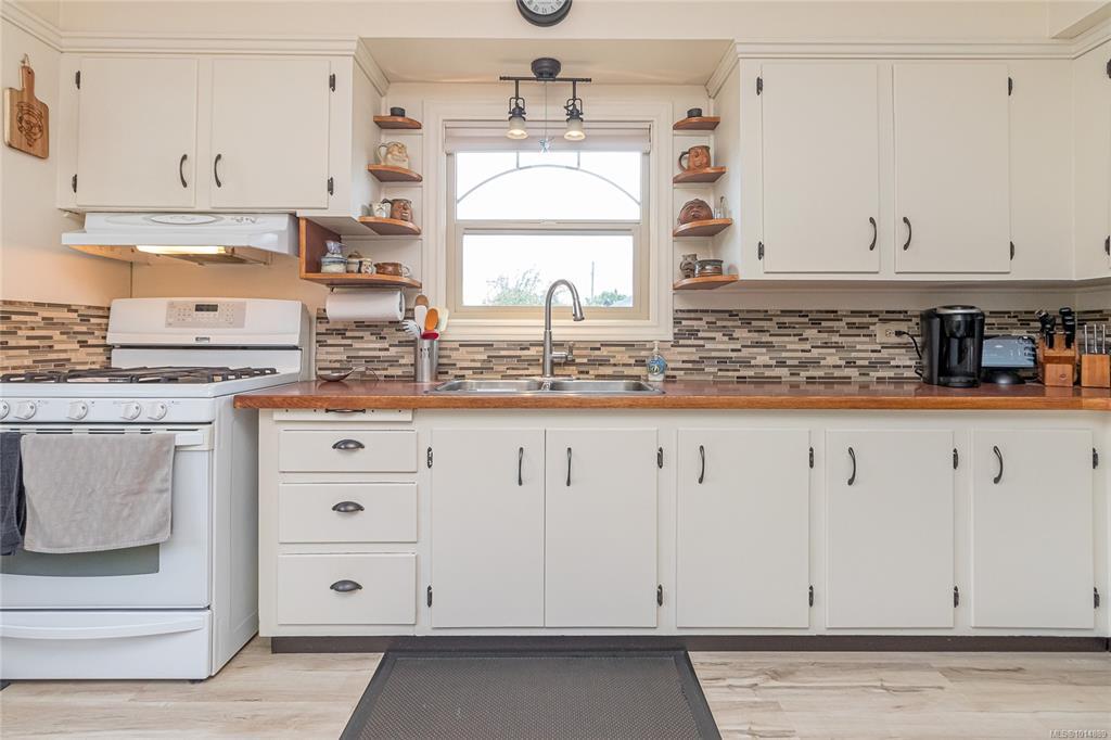 Very cute and well update 2 bedroom 1 bath character home in move in ready condition - this home has some beautiful hardwood flooring coved ceilings and arched doorways maintaining a charm to the house but with modern updated windows, heating system /heat pump and decor. Private rear yard with covered patios, storage and landscaping a single garage/workshop all backing onto a greenspace - Yard offers a really enjoyable outdoor space -Down stairs of house is 6'10" so possible to add more rooms or have oodles of storage or room for hobbies - The detached lot next door is available to purchase as well (MLS # 1014890)-The home sits on .17 acre level and fully landscaped lot - Just minutes to downtown Chemainus and Fuller Lake and other forms of recreation are just a mile away as well as walking trails just across the road. This is a really super cute home that is ready to go
